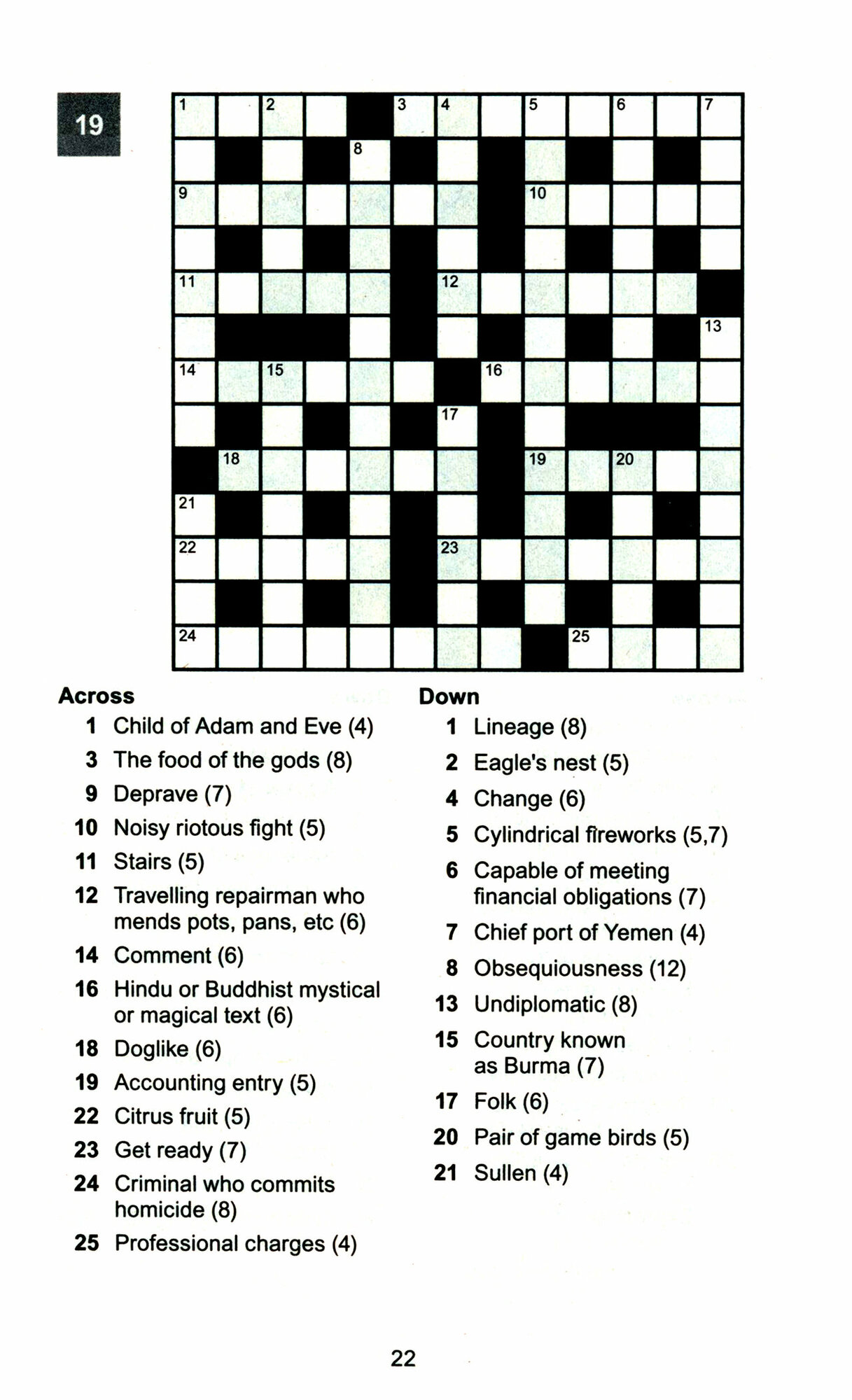 This book contains over 450 crossword puzzles devised by international puzzle experts and is designed to appeal to puzzlers everywhere. These crossword puzzles will test your general knowledge and exercise your grey matter.