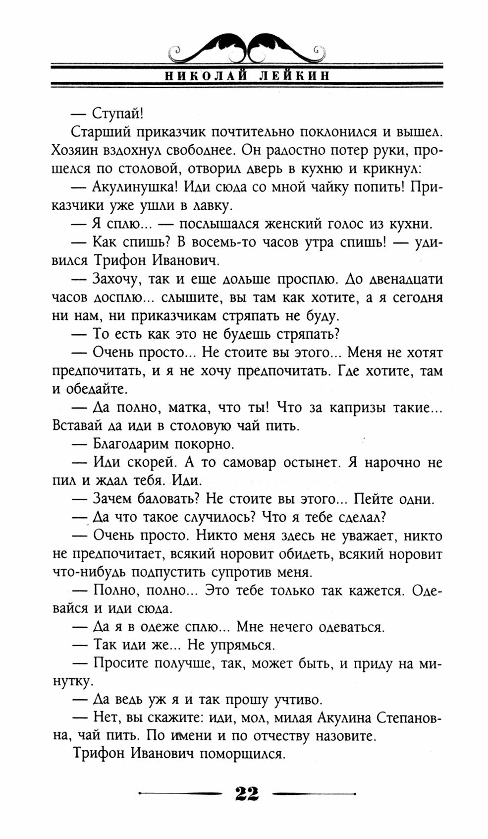 Бытописец России конца XIX — начала XX века, сатирик Николай Александрович Лейкин как всегда точно ухватывает подсмотренные им в жизни образы соотечественников самых разных сословий и характеров. В этом, в чем-то смешном, а в чем-то грустном романе остроумно обыграны самые разные типы персонажей.