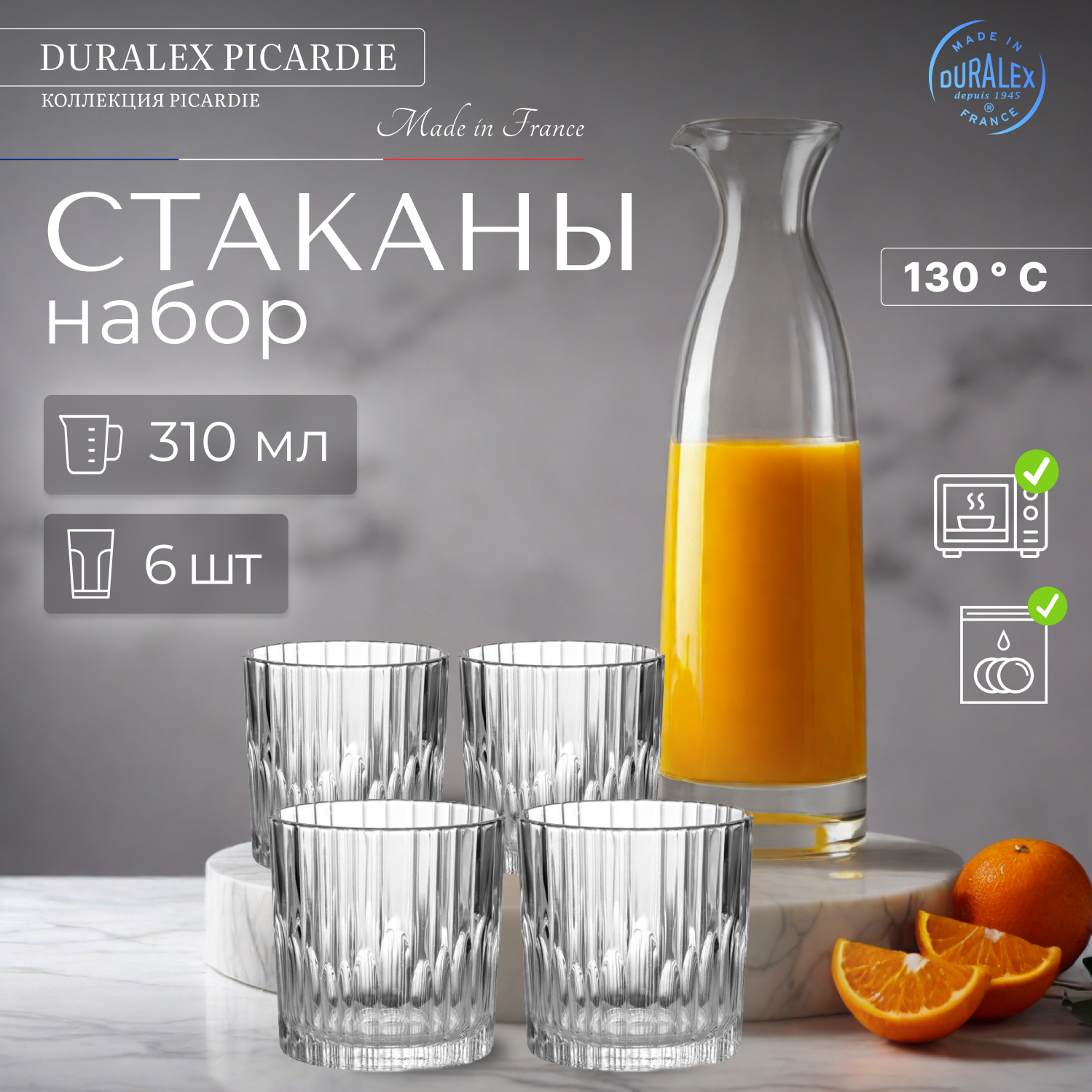 Стаканы Duralex из закаленного ударопрочного стекла. Посуда из такого стекла выдерживает температурные перепады в диапазоне от -20 до +100 градусов Цельсия. С такими характеристиками посуда Посуда ТМ Duralex рассчитана на повседневное использование, подходит и для микроволновой печи, и для посудомоечной машины. Посуда не впитывает запахи, поверхность не теряет цвет в течение длительного времени. Даже если посуда этой марки разбивается, то ее осколки не имеют острых углов исключая порезы, что особенно важно при наличии в доме маленьких детей.