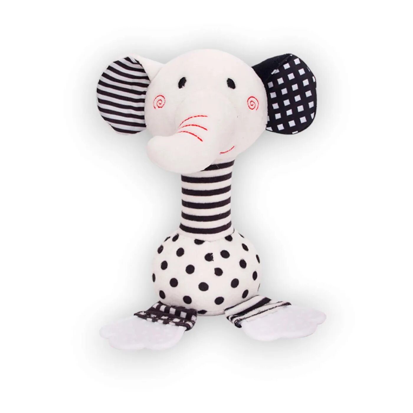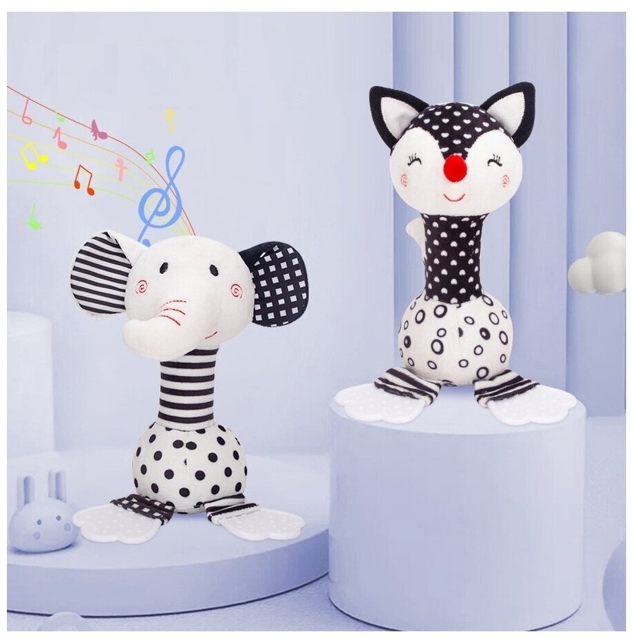 Игрушка с прорезывателем "Слоник" - маленький и верный друг для Вашего малыша. Самые первые цвета, которые хорошо различает кроха это именно черный и белый. Мягкая игрушка для новорожденных, выполнена из гипоаллергенных и безопасных материалов, составит компанию Вашему малышу и днем, и ночью.