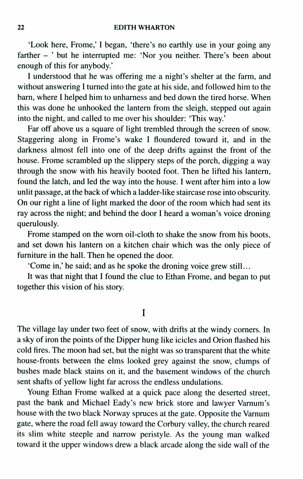 Edith Whartons novella Ethan Frome (1911) is a classic of American literature. Mattie Silver, a young and guileless girl, is hired to keep house on the bleak New England farm belonging to Ethan Frome and his sickly wife Zeena, who is her cousin. Mattie completely captures Ethan's heart, but the would-be lovers are kept apart by the spiteful Zeena, who then banishes the girl without warning. Before she leaves, Ethan takes Mattie on a promised sled run, with profound and dreadful consequences.