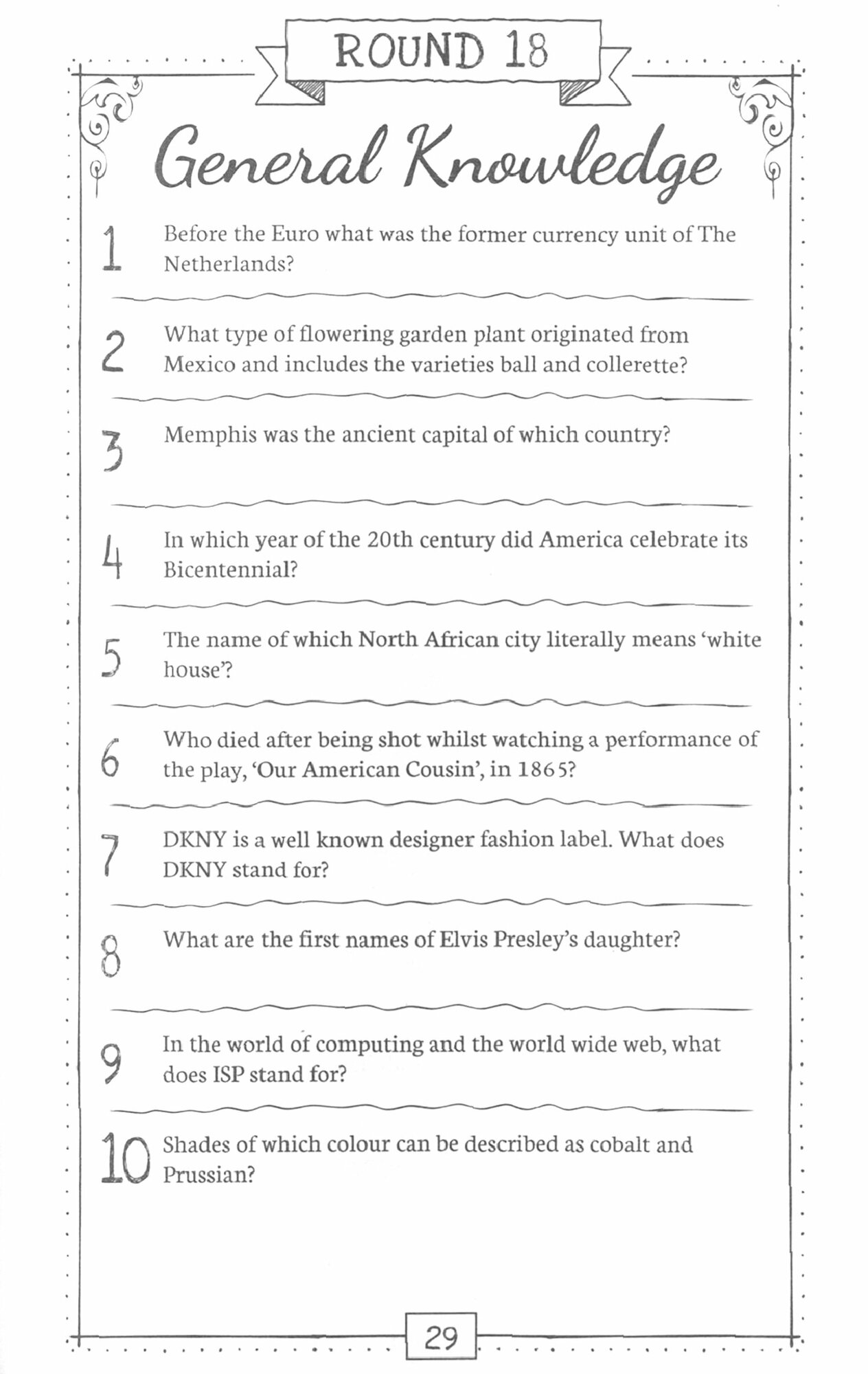 Over 4000 questions, together with a 'how to run a pub quiz' introduction, provide you with everything to host the best quiz night ever! The questions cover a wide range of subjects to test the general knowledge of the most seasoned quiz fans.