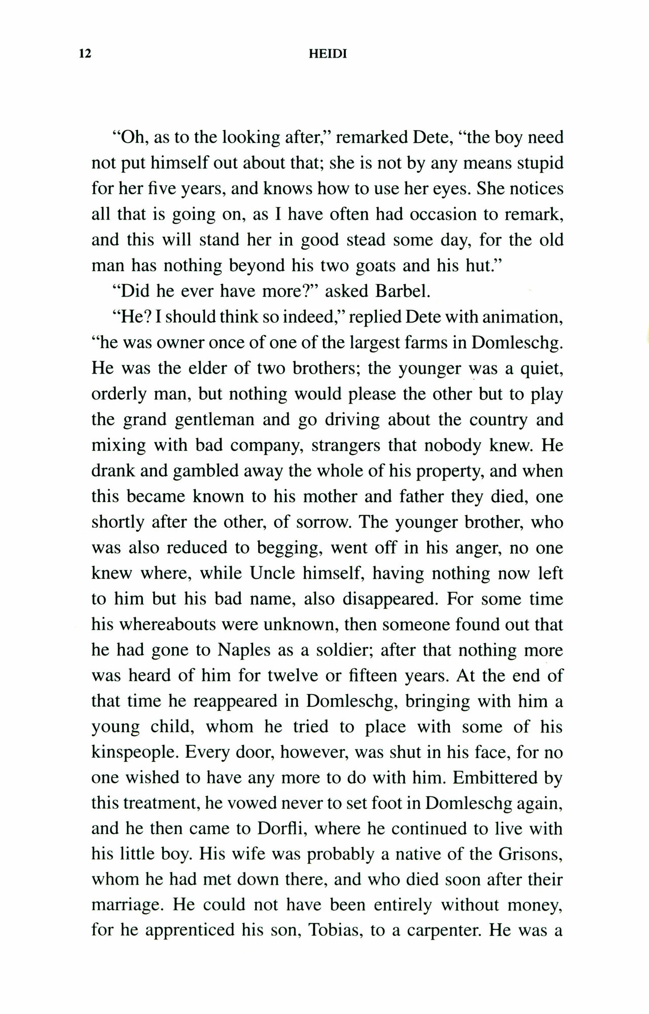 At the young age of five, little orphan Heidi is sent to live in the Swiss Alps with her grandfather. Everyone in the village is frightened of him, yet the two of them form an unlikely bond, and Heidi loves her simple existence in the mountains. Everything is going well, until she is taken away to lead a life in the town. Isolated and unhappy, can Heidi make it back to the friends she has made, and the grandfather she adores? This classic tale, full of warmth and joy, is sure to delight readers of all ages.