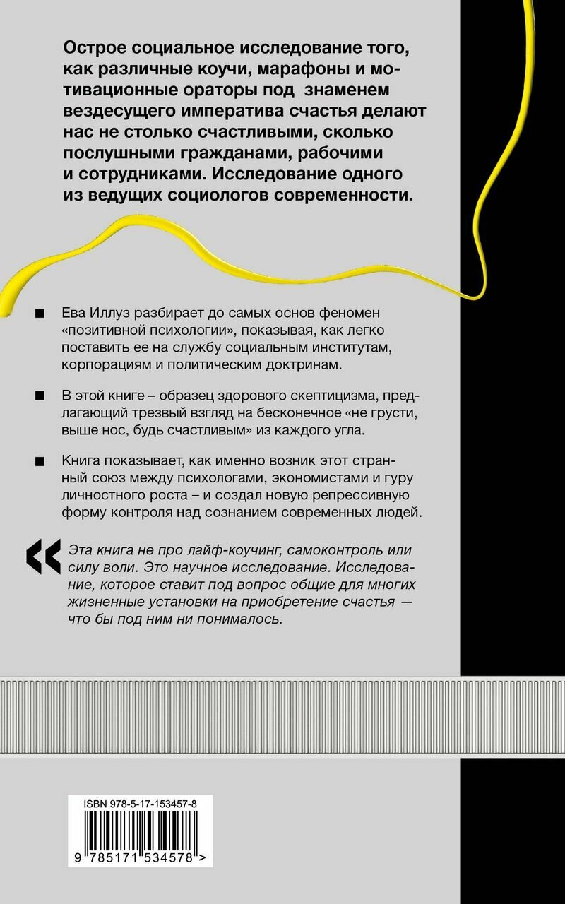 Острое социальное исследование того, как различные коучи, марафоны и мотивационные ораторы под знаменем вездесущего императива счастья делают нас не столько счастливыми, сколько послушными гражданами, рабочими и сотрудниками. Исследование одного из ведущих социологов современности.