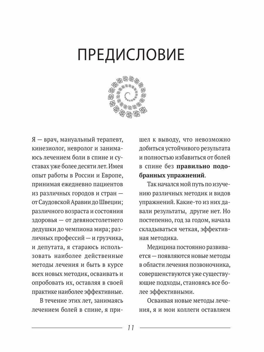 Доктор Алексеев доказал, что «обычные» упражнения для позвоночника могут оказаться бесполезными, а иногда даже опасными при некоторых заболеваниях. В результате многолетних исследований, проб, наблюдений он нашел решение — разработал комплекс специальных упражнений, которые позволяют полностью, в короткие сроки и без вреда организму на самом деле решить проблемы со спиной, а также укрепить и защитить позвоночник.