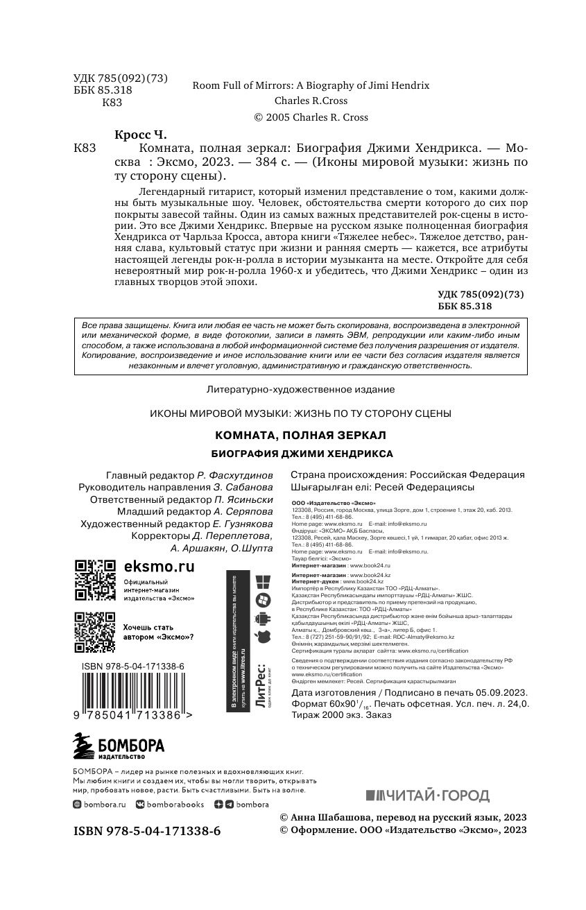 Легендарный гитарист, который изменил представление о том, какими должны быть музыкальные шоу. Человек, обстоятельства смерти которого до сих пор покрыты завесой тайны. Один из самых важных представителей рок-сцены в истории. Это все Джими Хендрикс. Впервые на русском языке: полноценная биография Хендрикса от Чарльза Кросса, автора книги “Тяжелее небес”. Тяжелое детство, ранняя слава, культовый статус при жизни и ранняя смерть – кажется, все атрибуты настоящей легенды рок-н-ролла в истории музыканта на месте. Откройте для себя невероятный мир рок-н-ролла 1960-х и убедитесь, что Джими Хендрикс – один из главных творцов этой эпохи.