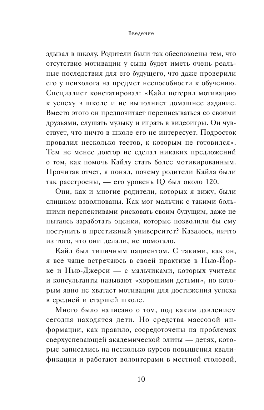 Ваш сын не аттестован в четверти? А вместо того, чтобы готовиться к контрольной, он уткнулся в телефон? «Ему как будто все равно. Он совсем не понимает, что сейчас важно», — сокрушаются родители. И в кого он такой лентяй? Но дело совсем не в лени, убежден эксперт по проблемам школьной успеваемости, психолог Адам Прайс. Так подросток справляется со стрессом. И вместо того, чтобы бросать себе вызов, учиться на ошибках и продолжать бороться за лучшие оценки, он сдается и теряет мотивацию. В книге вы найдете практики, которые позволят наладить контакт с ребенком, помогут сыну справиться с тревогой, поверить в свои способности и повысить мотивацию и интерес к учебе.