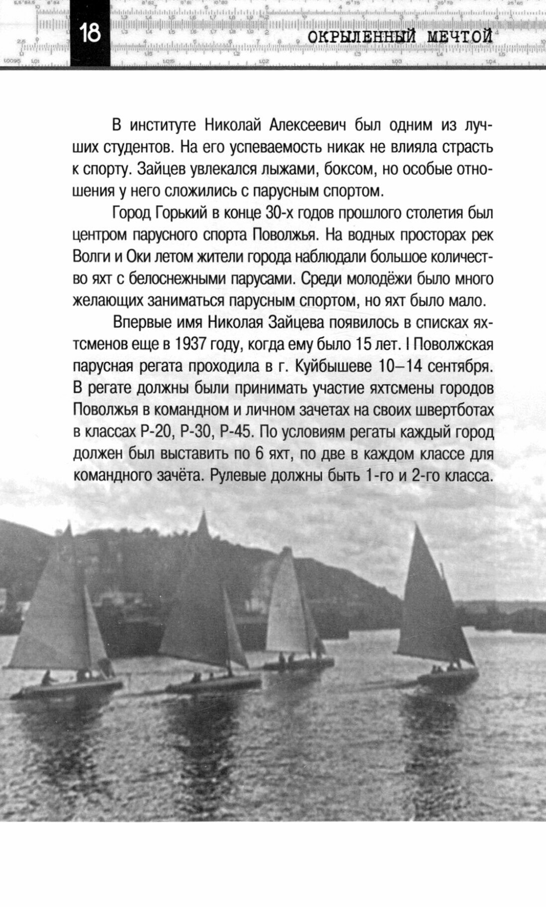 «Окрыленный мечтой » - первое издание (12+), посвященное судьбе и творческому пути конструктора Николая Алексеевича Зайцева, одного из создателей первых в мире судов на малопогруженных подводных крыльях и экранопланов, первого главного инженера ЦКБ по СПК им. Р. Е. Алексеева. В основу книги легли воспоминания коллег и близких Н. А. Зайцева. Это повествование о незаурядном человеке, увлеченном спортсмене, справедливом руководителе, товарище и наставнике, талантливом кораблестроителе, сумевшем воплотить мечты в металле, вписав свое имя в историю скоростного флота. Выход книги приурочен к 100-летию со дня рождения Н. А. Зайцева.