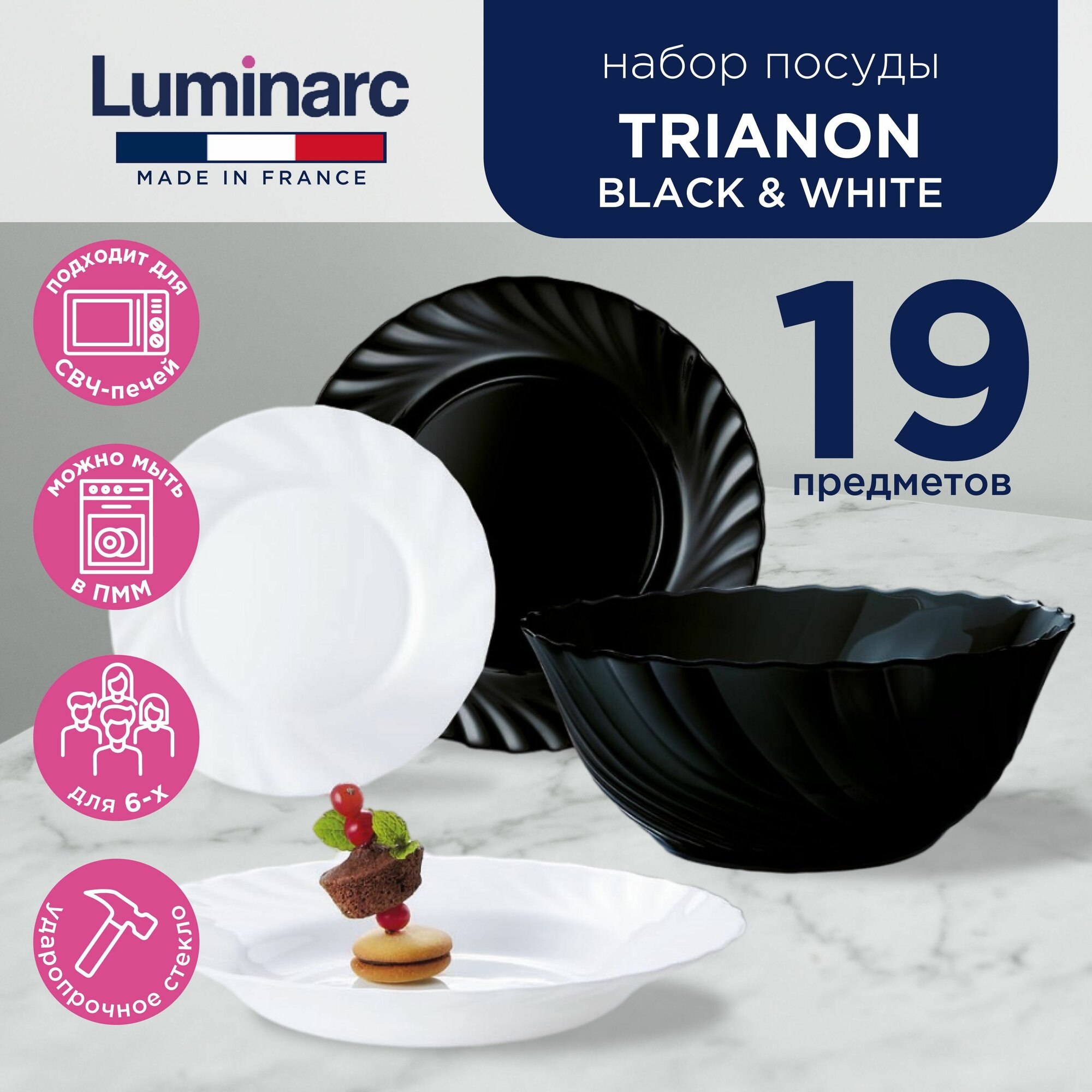 Набор посуды Luminarc Трианон черно-белый 19 предметов ARC France