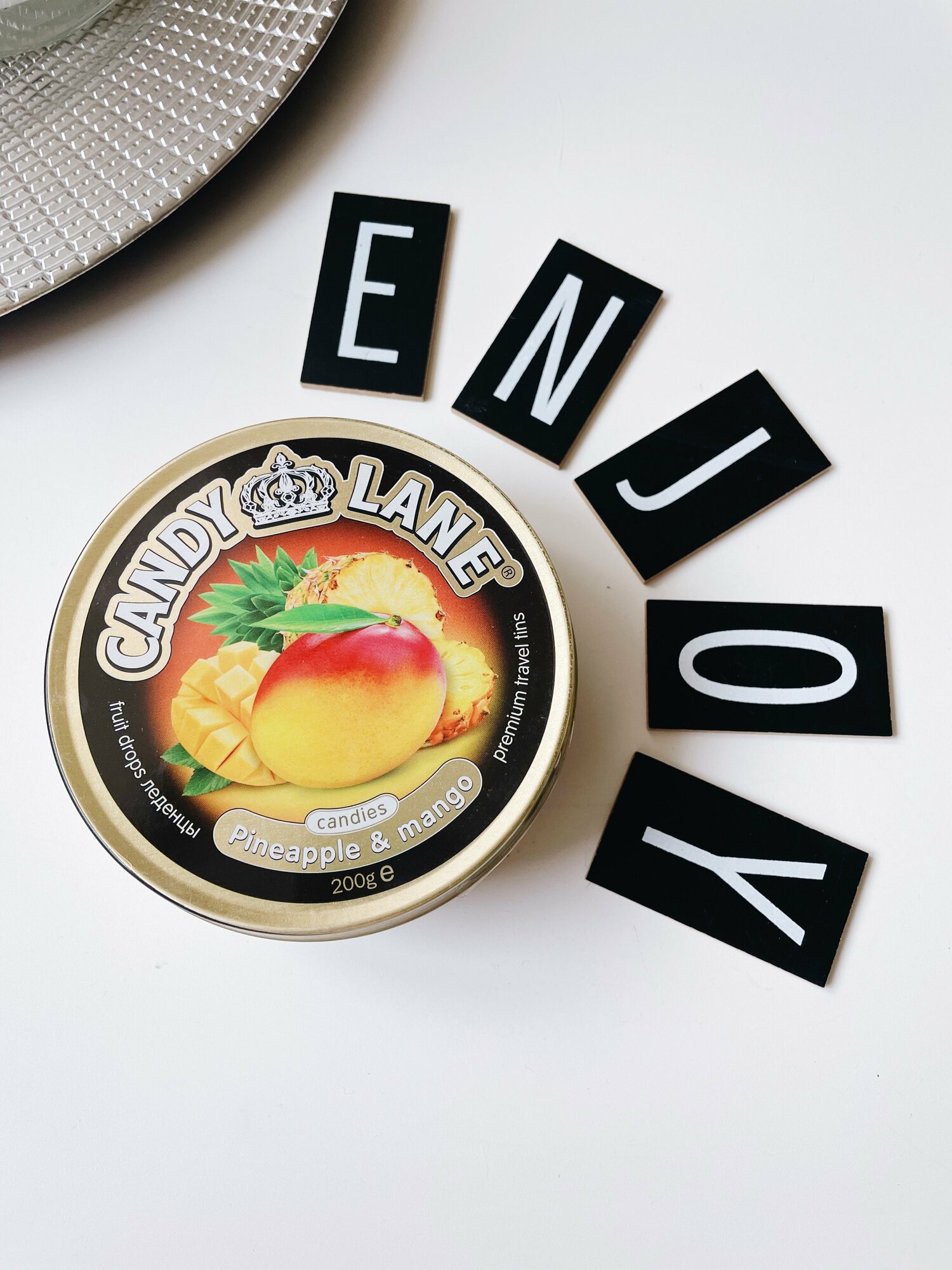 Candy Lane "Ананас и манго" изготавливается на российской фабрике, а их состав - это полностью натуральные ингредиенты. В одной баночке - микс двух вкусов. Яркое сочетание ананаса и манго влюбляет в себя с первой конфетки, а изысканные кисло-сладкие нотки ананаса и манго способны удивить даже самого капризного эстета. Леденцовая карамель обладают сбалансированным количеством обсыпки, которая не просыпается на одежду, не пачкает руки и не позволяет леденцам слипаться друг с другом.
