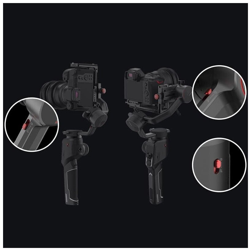 AirCross 2 совместим с большинством беззеркальных и зеркальных камер весом до 2.5кг., включая широкоформатные, такие как Blackmagic Pocket 4K, и камеры со встроенной рукояткой, такие как Nikon D5. совместимость С габаринтыми камерами Производительные двигатели и тщательно продуманное монтажное пространство дает возможность стабилизатору работать с большинством камер с микролинзами или обычными объективами. Кроме того, MOZA AirCross 2 совместим с различными уникальными камерами и комбинациями объективов, например: BMPCC 4K с широким корпусом, или использовать зум-объектив с большой апертурой и многие другие вариации.