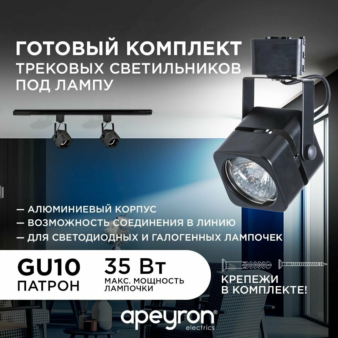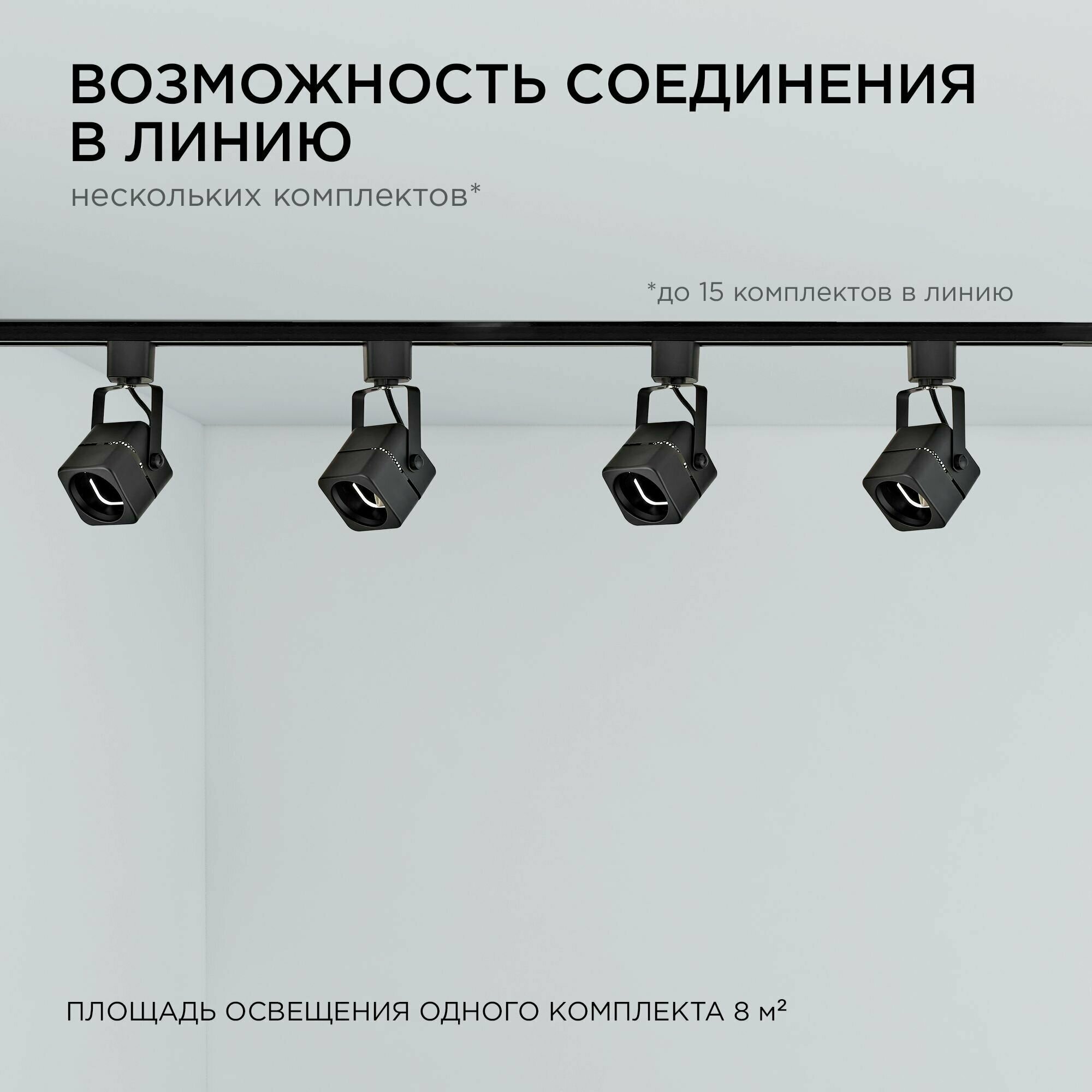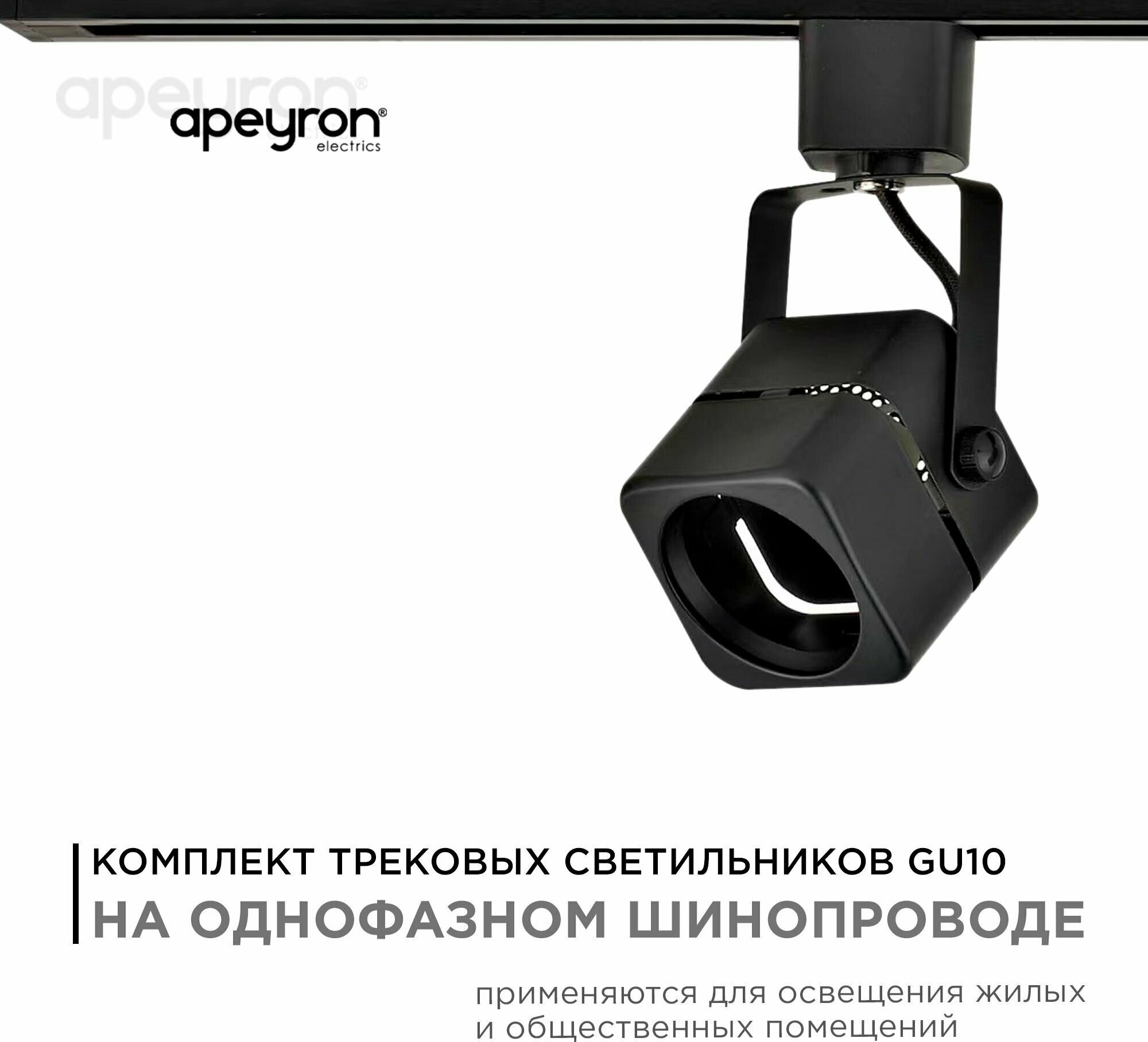 Трековая система освещения Apeyron однофазная накладная прямая цвет черный 3.5 м2 цвет черный под лампу