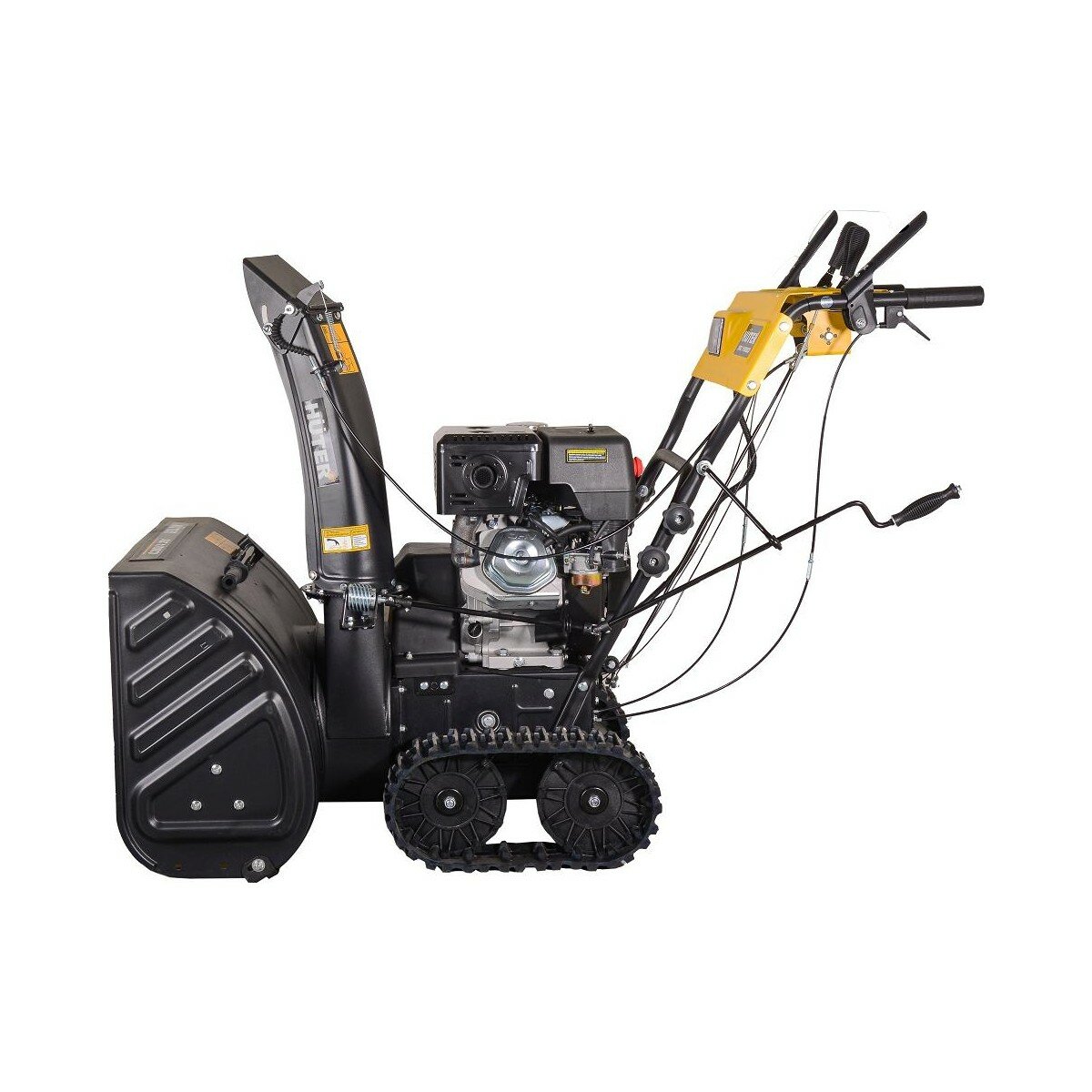 Прочный металлический шнек измельчает слежавшийся и обледенелый снег, а ручка регулировки даёт возможность изменять сторону выброса во время движения. Яркая фара создаёт комфортные условия для работы на плохо освещенных территориях.