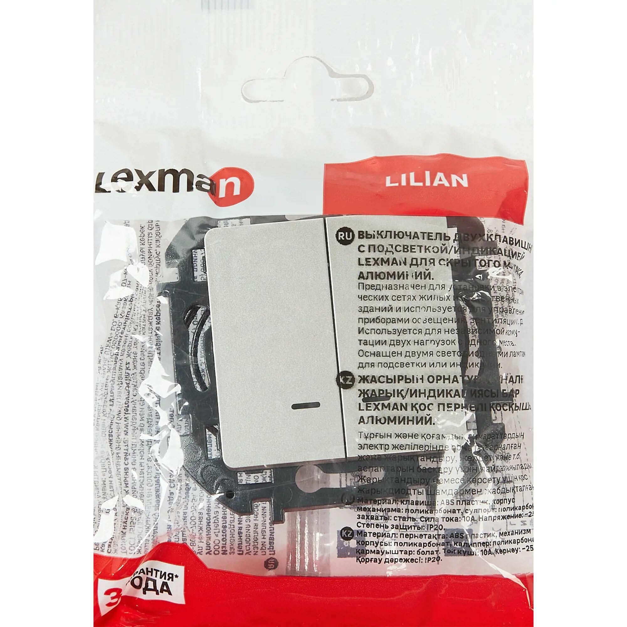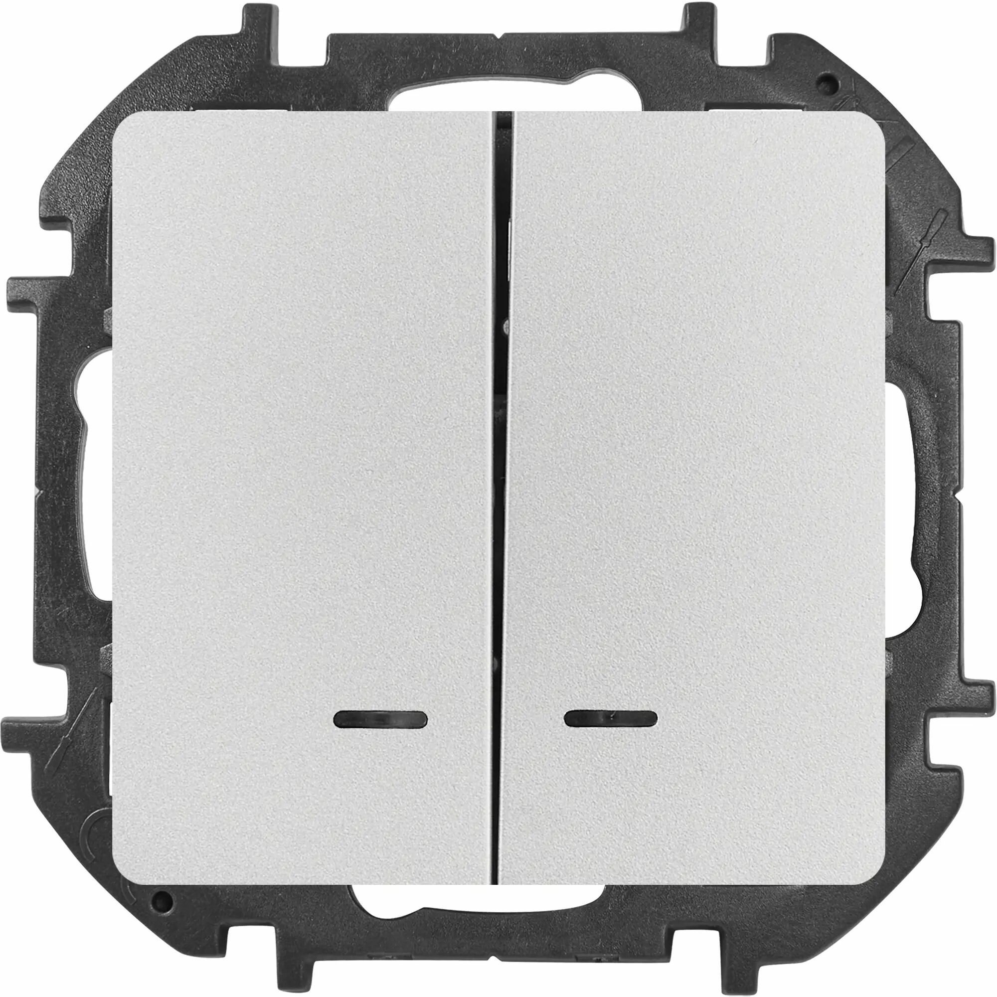 Выключатель двухклавишный с подсветкой/индикацией LEXMAN LILIAN для скрытого монтажа, цвет "Жемчуг", номинальный ток 10 А, напряжение ~250В.