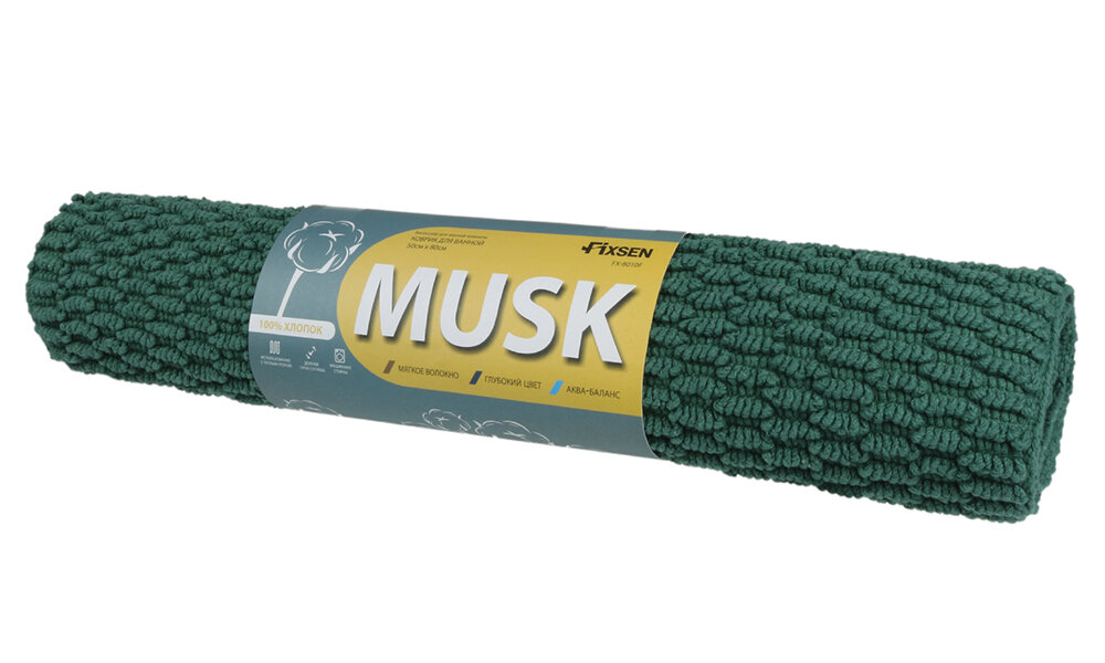 **Коврик для ванной Fixsen Musk** разработан для помещений с повышенной влажностью. Он производится из хлопковых волокон. Этот материал хорошо переносит контакт с водой, невосприимчив к бактериям и грибку, быстро высыхает. Коврик легкий и мягкий на ощупь. За счет своей структуры почти не собирает на себе мелкий мусор. За ним легко ухаживать: в случае загрязнения его нужно просто промыть под струей воды и высушить.