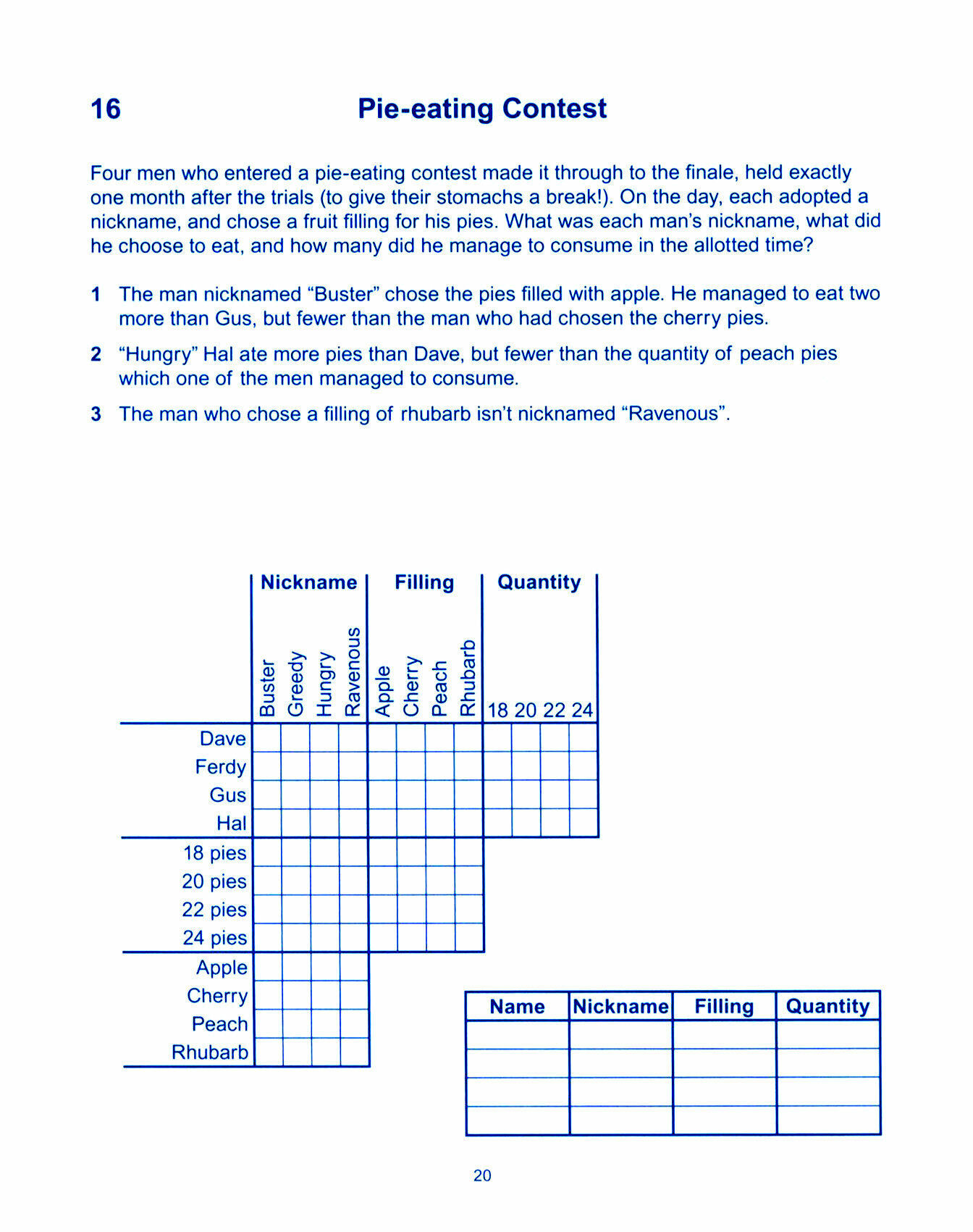 These puzzles have been designed to develop your powers of reasoning, and test your mental agility, while at the same time providing you with plenty of entertainment and satisfaction. Each problem includes a grid which you can use to unscramble the facts and find the answer.