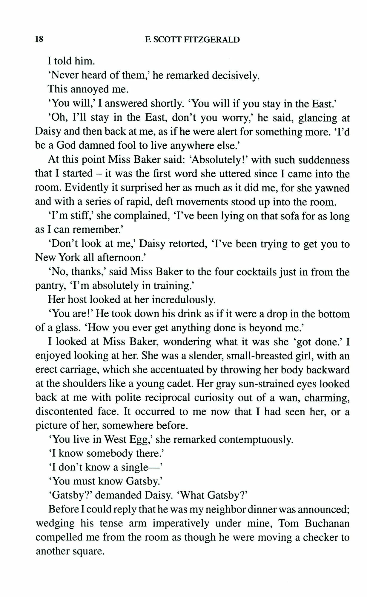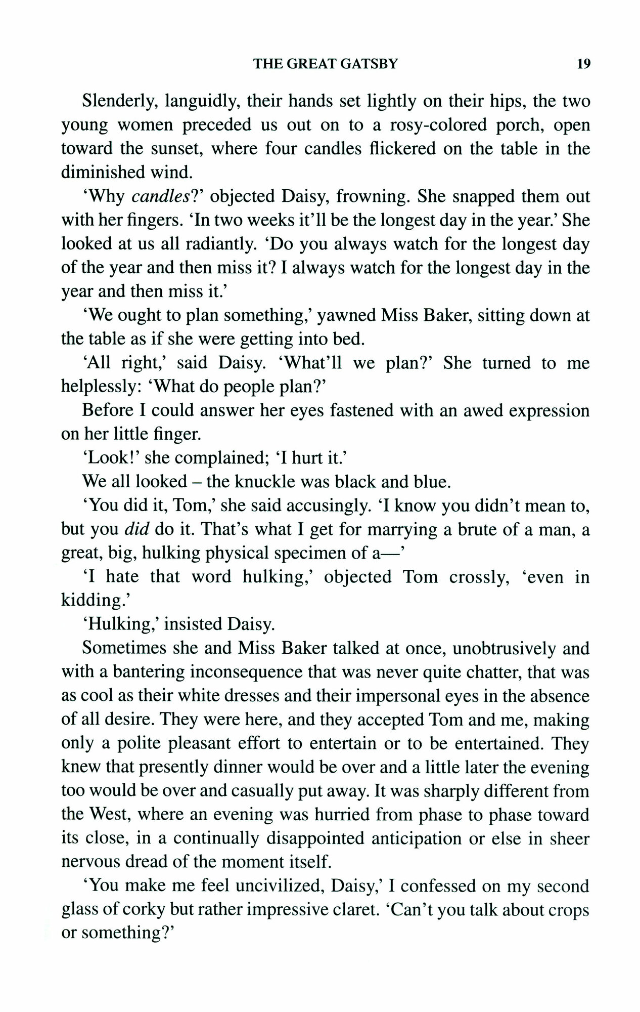 Jay Gatsby is a mystery to Nick. On the surface he is a man of wealth and excess - throwing wild, extravagant parties that run deep into the night. But cracks begin to show in this facade as we meet Daisy Buchanan, the lady across the lake who is the object of his quiet obsession.