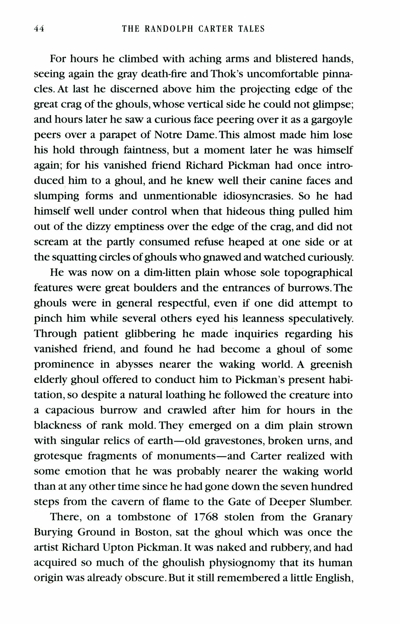 Most of Lovecraft's tales were standalone and of the short fiction variety, but in the Randolph Carter Tales Lovecraft followed one character through a series of terrifying adventures. This volume includes the novella The Dream-Quest of the Unknown Kadath, The Statement of Randolph Carter, and The Silver Key, amongst other stories. The Randolph Carter stories are some of the most mature and philosophical of any of Lovecraft's fiction.