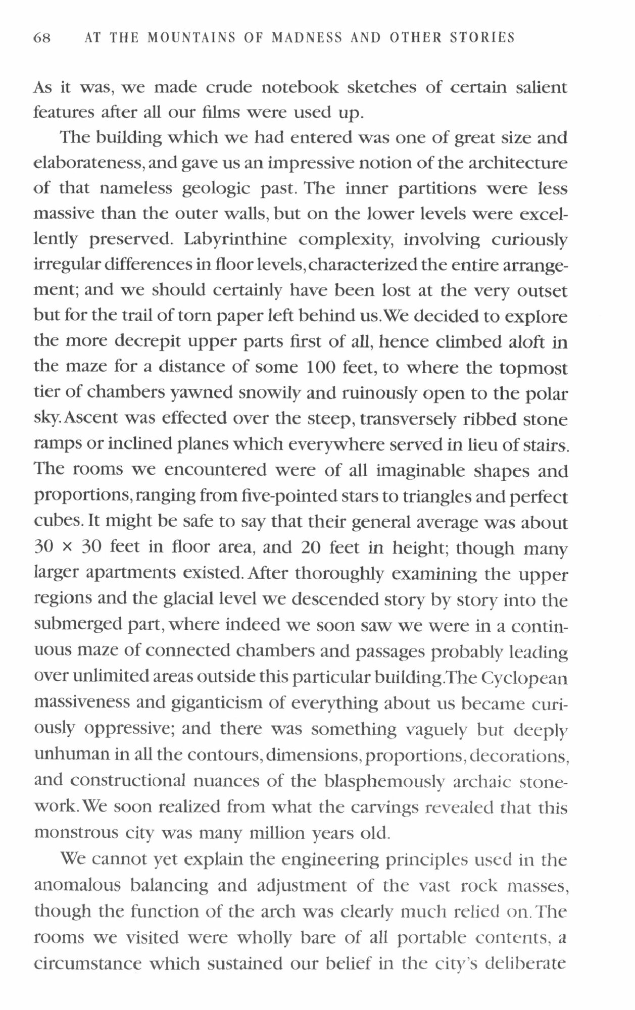 In H. P. Lovecraft's most chilling novel, scientists from Miskatonic University embark on an expedition to an abandoned city in the Antarctic. As its secrets are gradually revealed, the professors discover there are ancient terrors lurking beneath the ice-and they promise a future too horrible to contemplate.
