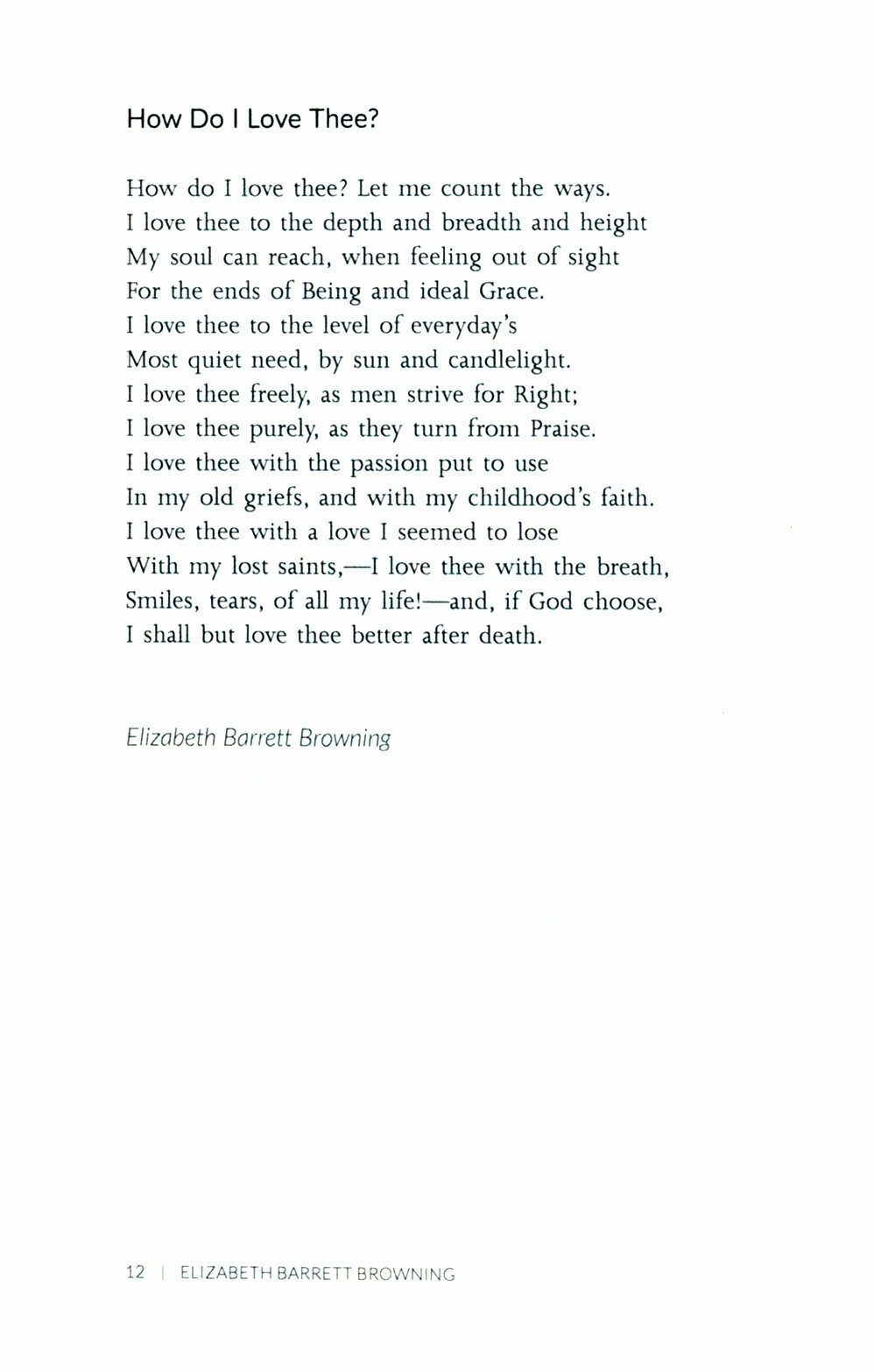 Featuring the greatest love poems of all time, this collection brings together poets as diverse as William Shakespeare, Lord Byron, Christina Rossetti and Walt Whitman. As each brings their own unique approach to love, marriage and attraction the poems offer both tender tributes to romantic love and passionate exclamations that are sure to provoke an emotional response.