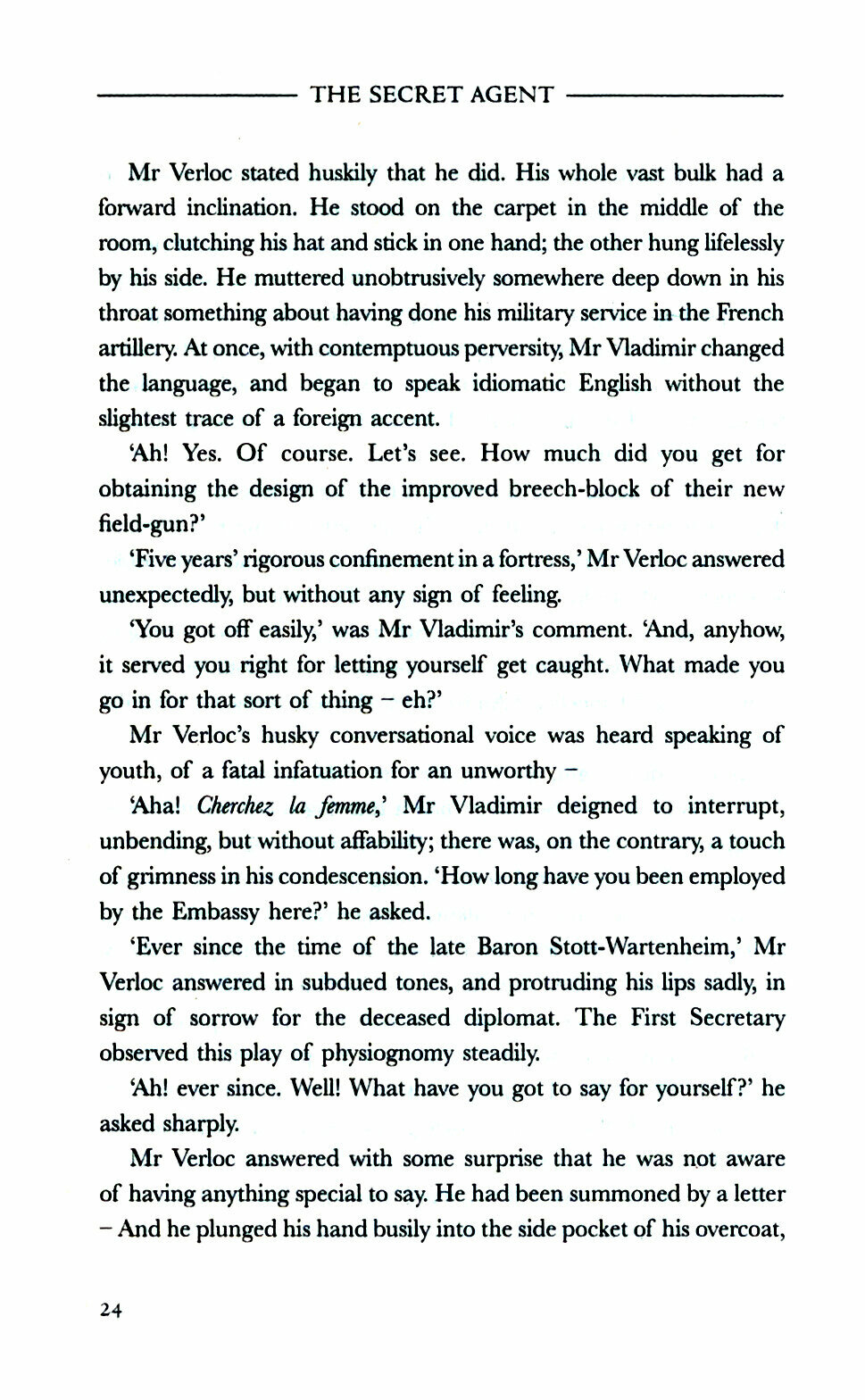 Published in 1907, Conrad's compelling tale of anarchy, espionage and violence is set in the seedy back streets of Victorian London where Adolf Verloc, a shopkeeper who is also a secret agent, is assigned the task of blowing up the Greenwich Observatory.