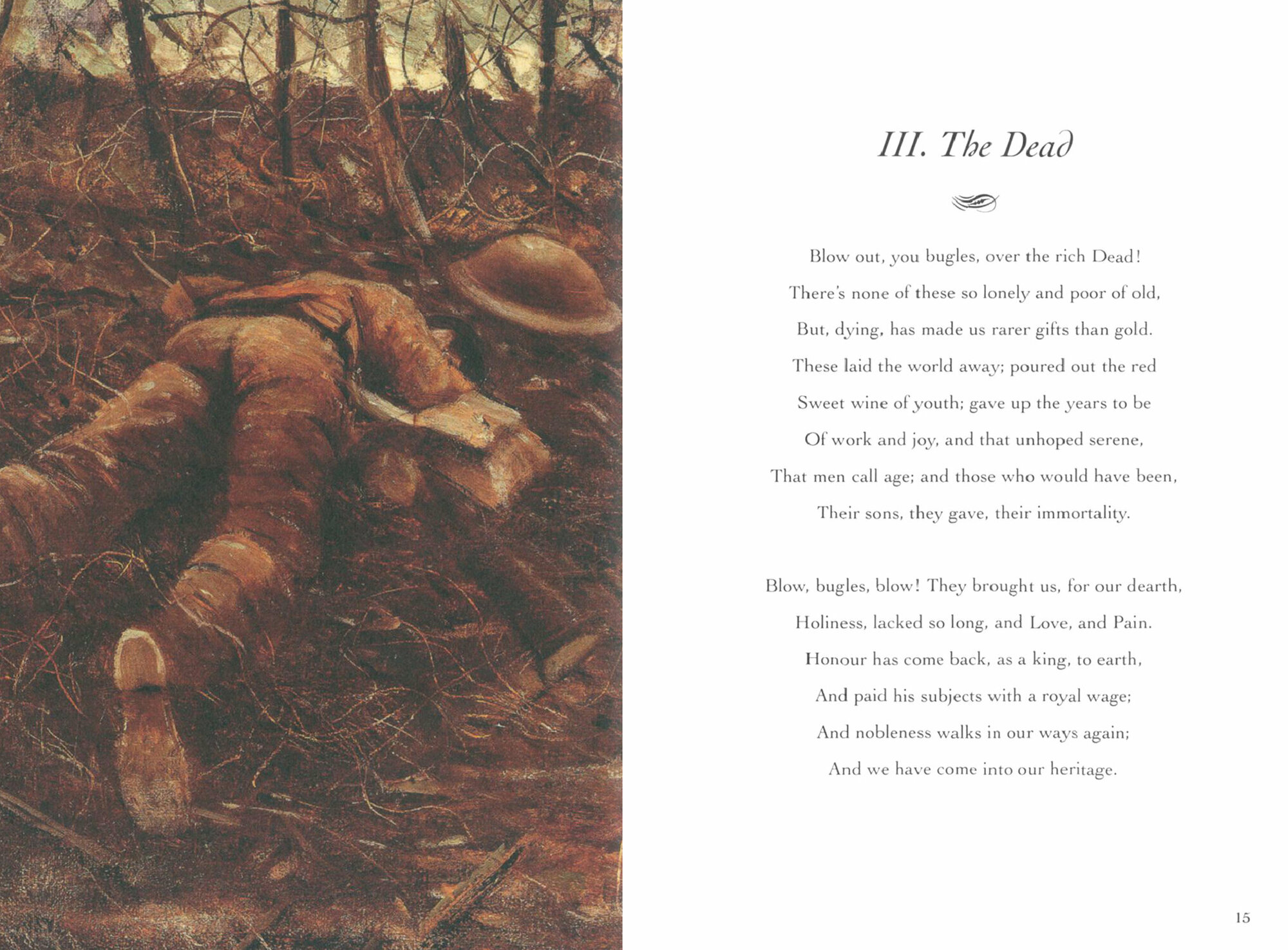 Selected from the work of soldiers killed in action - starting with Rupert Brooke in 1915 and ending with the tragic loss of Wilfred Owen seven days before the Armistice - the poems capture a broad range of emotions and states of mind, ranging from anthems about the brutality of war to wistful evocations of home and loved ones left behind.