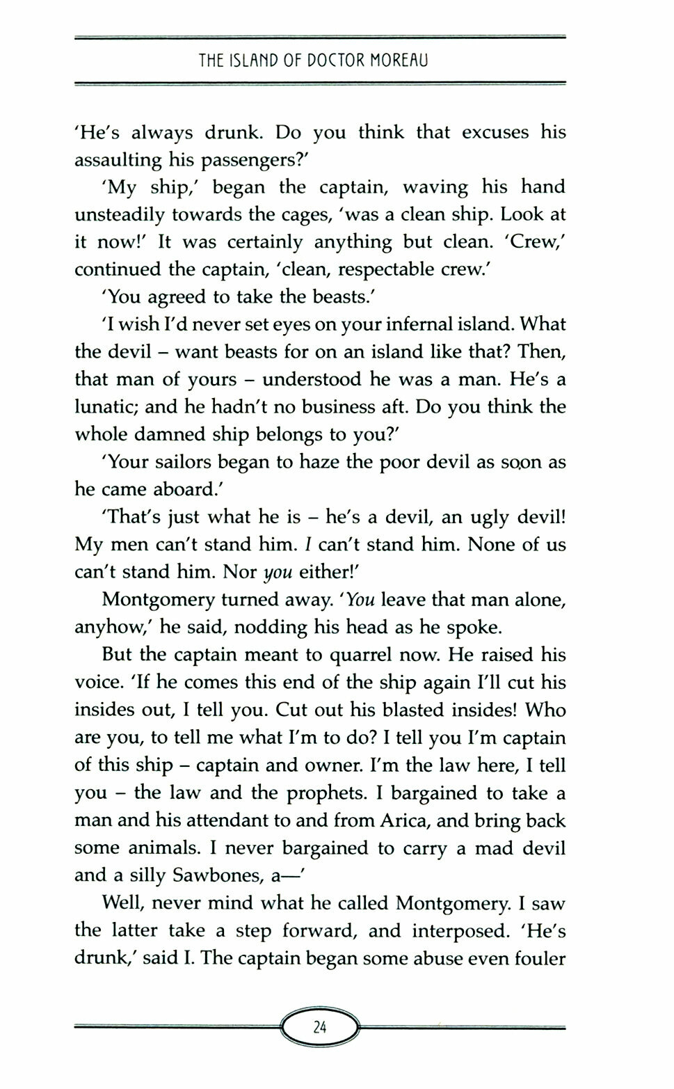 In HG Wells's disturbing evolutionary tale, Edward Prendrick is the shipwrecked naturalist who finds himself stranded on the island of a mad scientist, inhabited by hybrid beast-human creatures as the results of Dr Moreau's experiments.