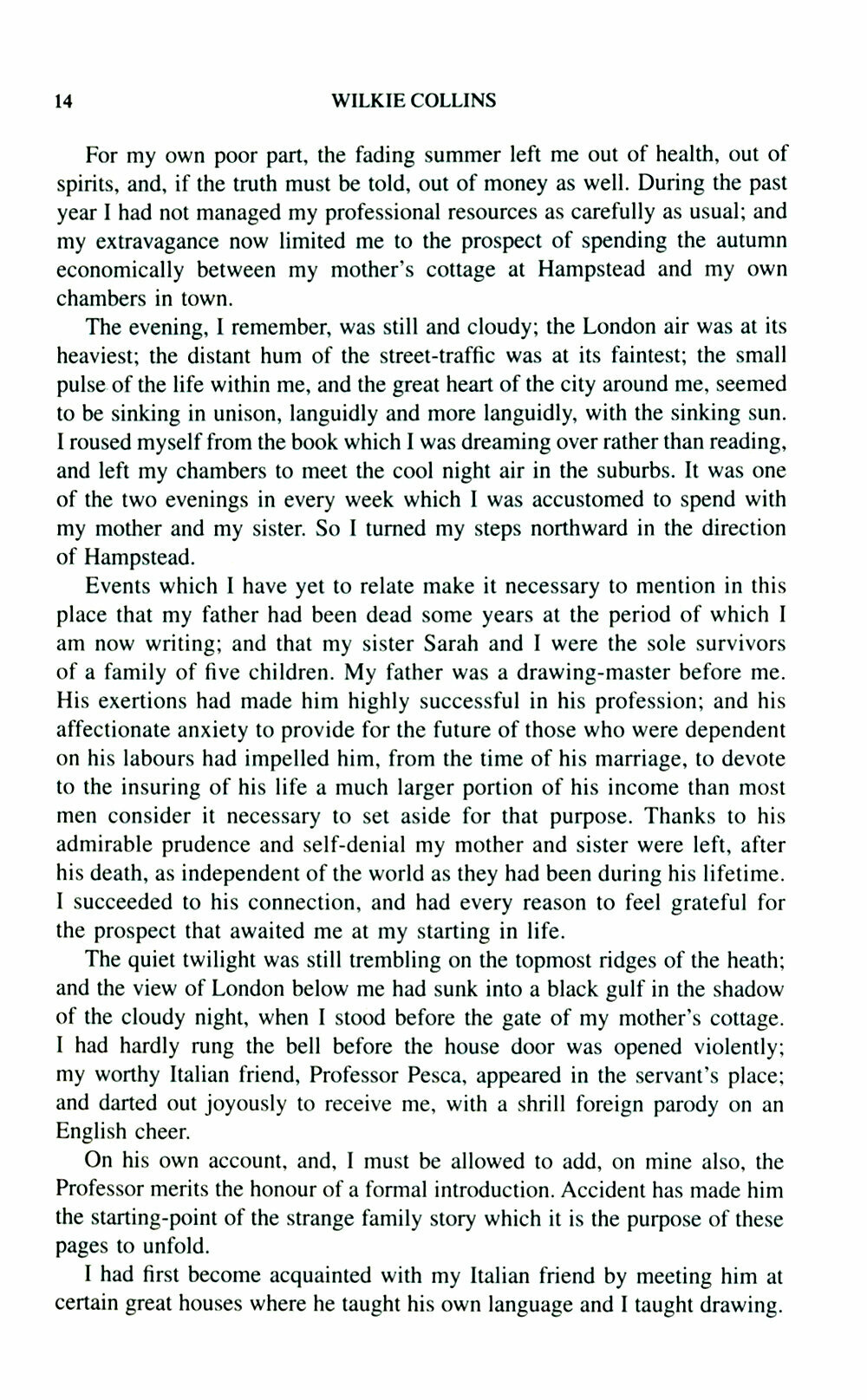 On a moonlit night in north London, Walter Hartright encounters a solitary, terrified and beautiful woman dressed in white and feels impelled to solve the mystery of her distress. A sensation when it first appeared in 1860, this thriller exploits Victorian psychology as well as portraying the Victorian social scene.