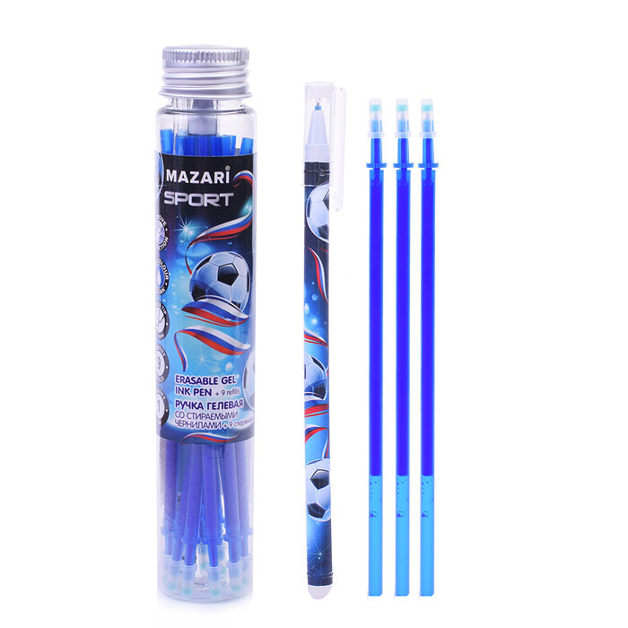Ручка гелевая со стираемыми чернилами Sport синяя + 9 стержней в ассортименте MAZARI