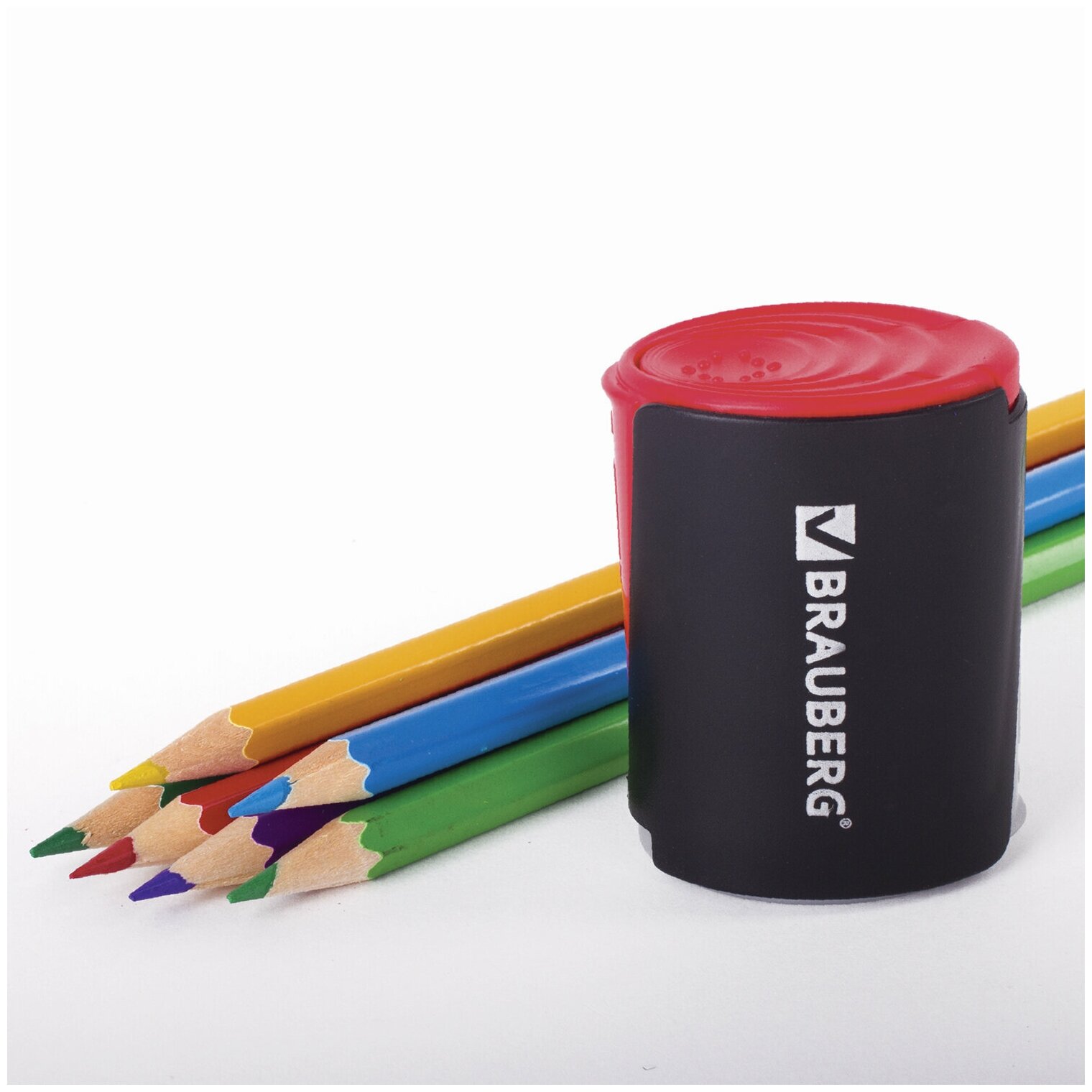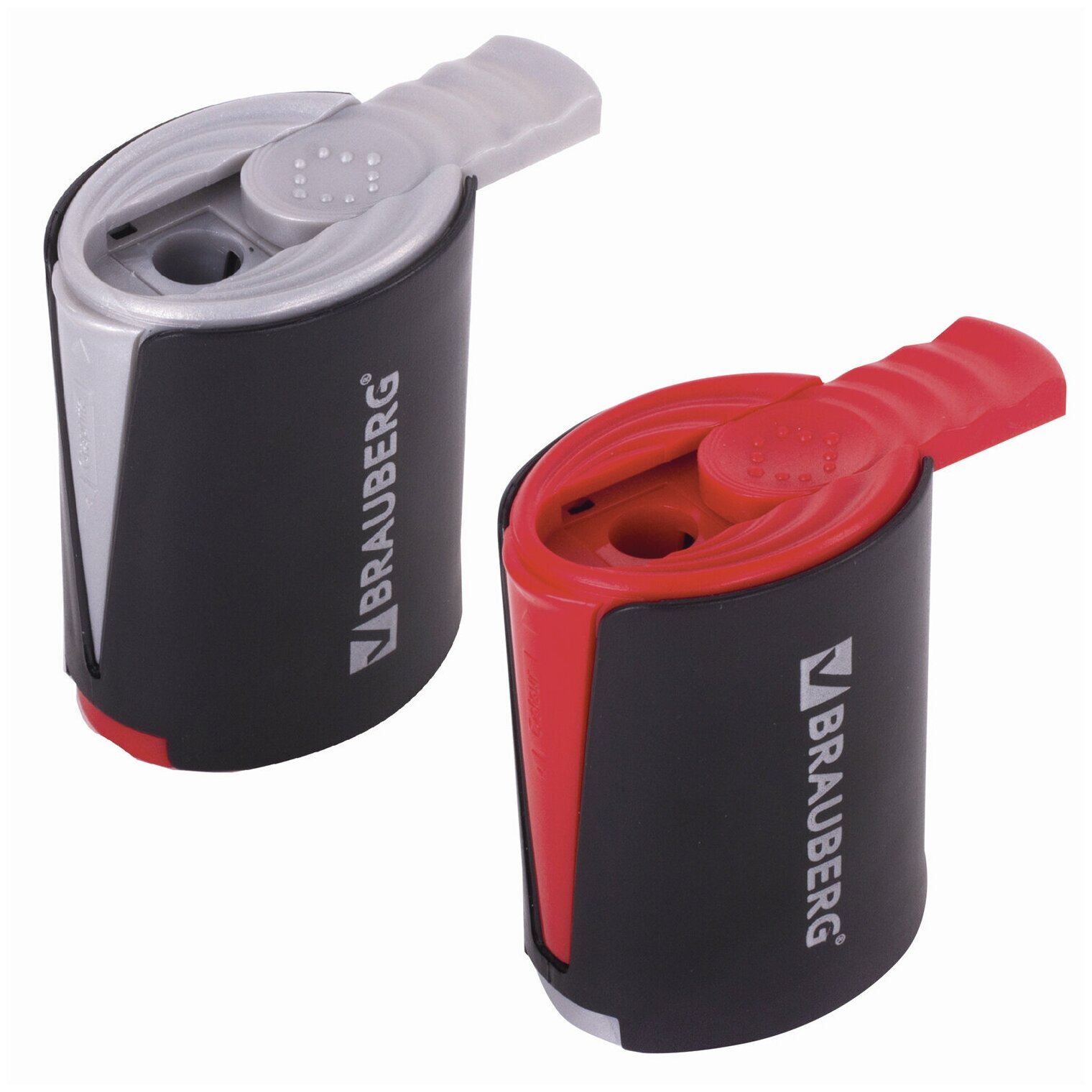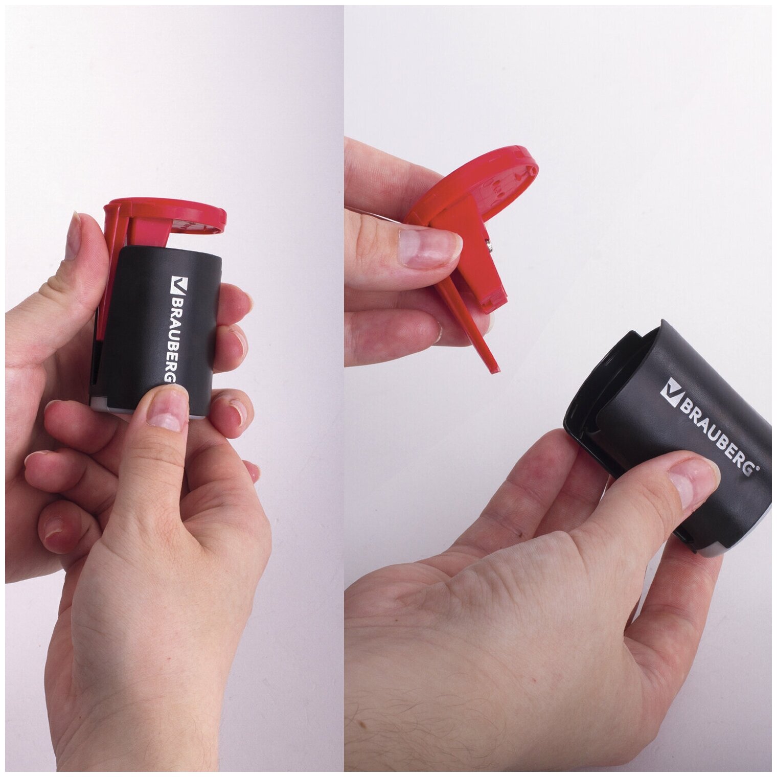 Для чернографитных и цветных карандашей. Качественное стальное лезвие обеспечивает лёгкое равномерное затачивание. Корпус изготовлен из черного пластика. Отверстия точилки защищены сдвигающимися крышками.