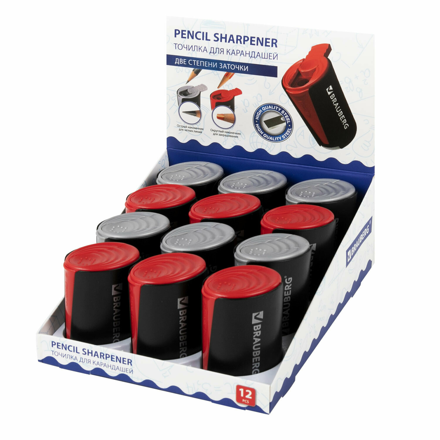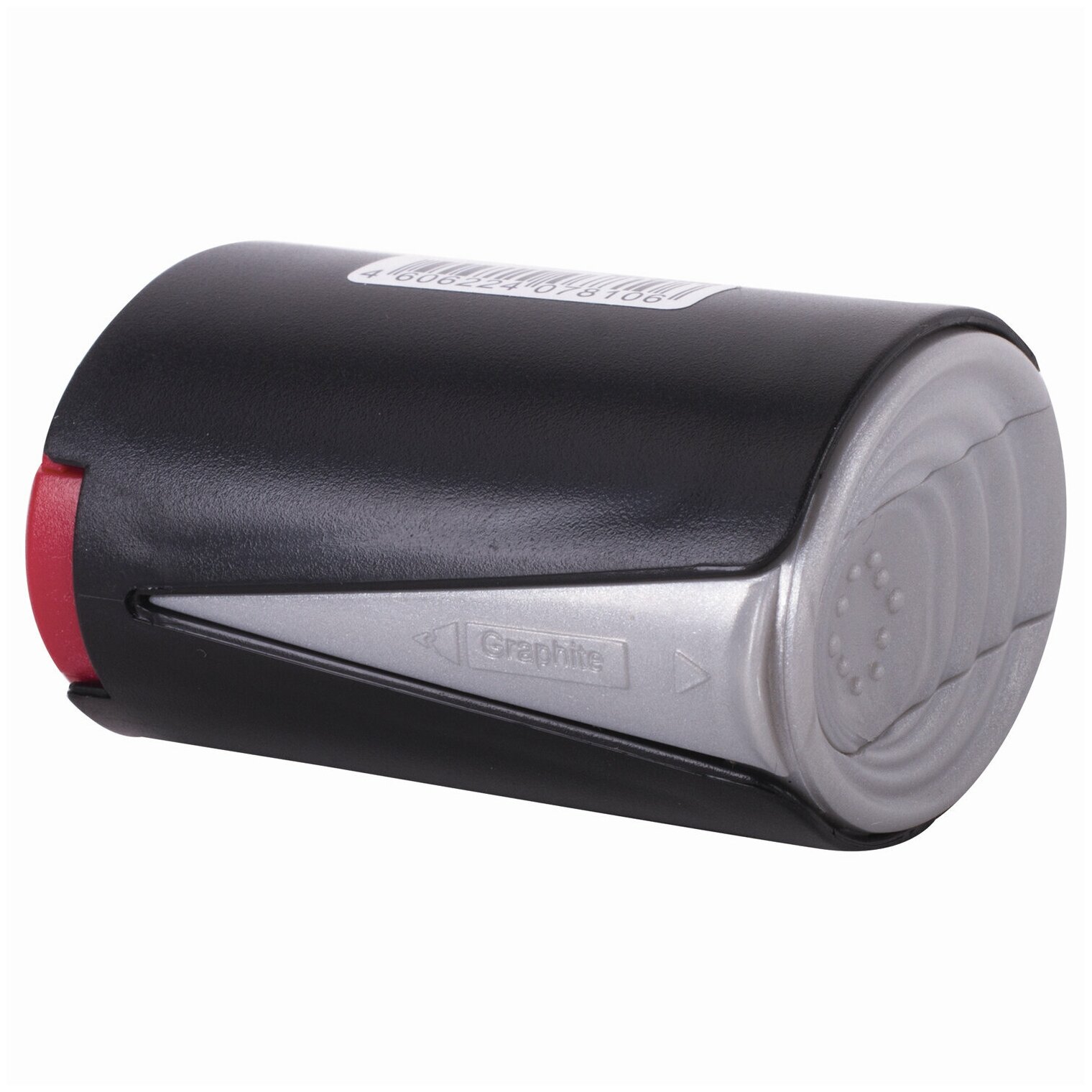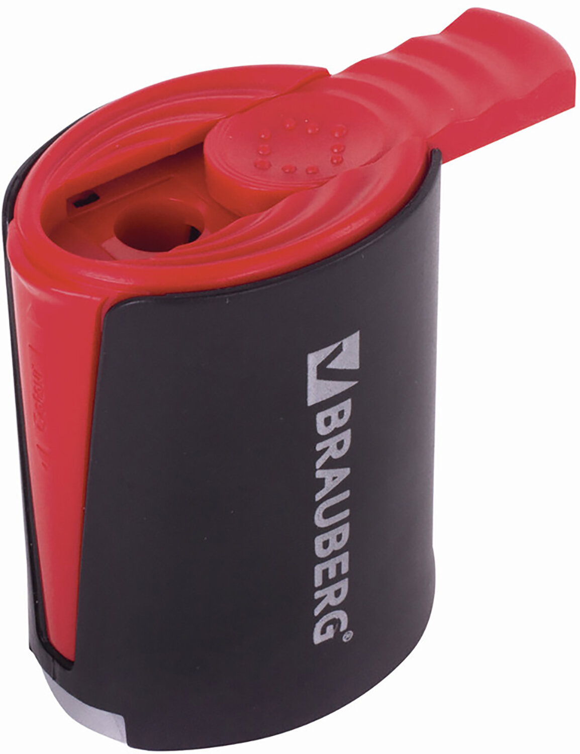 Для чернографитных и цветных карандашей. Качественное стальное лезвие обеспечивает лёгкое равномерное затачивание. Корпус изготовлен из черного пластика. Отверстия точилки защищены сдвигающимися крышками.