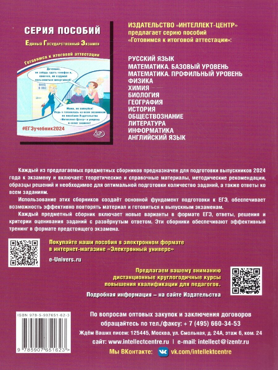 Данное пособие предназначено для подготовки учащихся 11 классов к Единому государственному экзамену (ЕГЭ) по обществознанию. Издание включает типовые задания по всем содержательным линиям экзаменационной работы, а также примерные варианты в формате ЕГЭ 2024 года. Пособие поможет школьникам проверить свои знания и умения по предмету, а учителям - оценить степень достижения требований образовательных стандартов отдельными учащимися и обеспечить их целенаправленную подготовку к экзамену.