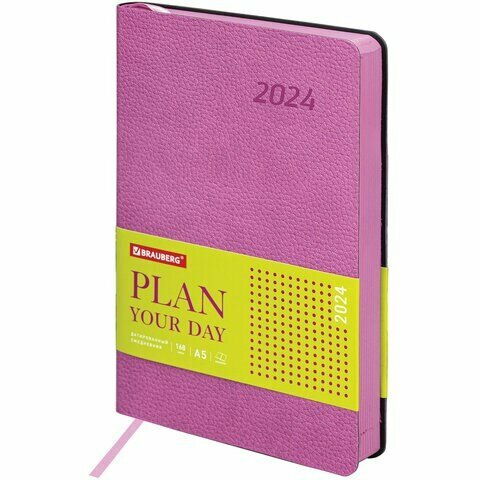 Ежедневник датированный на 2024 год Stylish розовый А5 Brauberg
