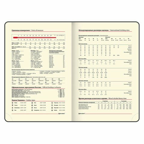 Внутренний блок включает 168 листов тонированной бумаги плотностью 70 г/м2. Каждая страничка имеет перфорированный угол. Благодаря стандартному формату А5 (138х213 мм) ежедневник удобно использовать как в офисе, так и на выездных деловых встречах. Мягкая (интегральная) обложка стилизована под фактурную кожу классического темно-синего цвета. Подходит для горячего тиснения. Дополнением является закладка-ляссе, с помощью которой при необходимости можно быстро открыть ежедневник на нужной странице. Помимо прочего, ежедневник снабжен справочным материалом.