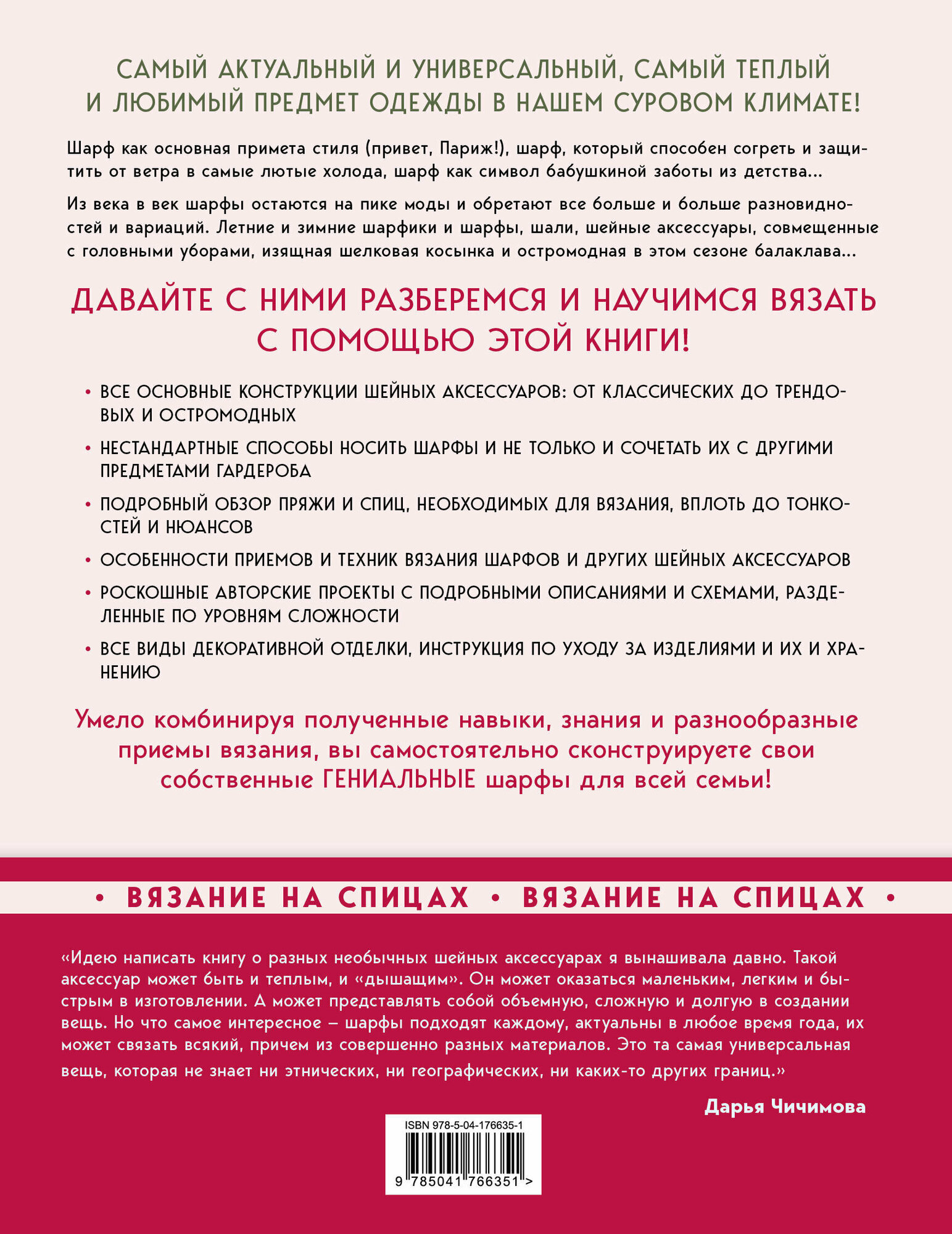 Гениальные шарфы. От бактуса до скейча. Конструктор трендовых шейных аксессуаров (Чичимова Дарья Сергеевна); ООО "Издательство "Эксмо", 2023
