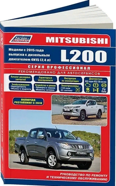 Книга Митсубиши Л200 с 2015 с дизельным двигателем 4N15 (2,4 л). Электросхемы, каталог запасных частей, характерные неисправности, диагностика. Руководство по ремонту, эксплуатации и техническому обслуживанию автомобиля. Серия Профессионал.