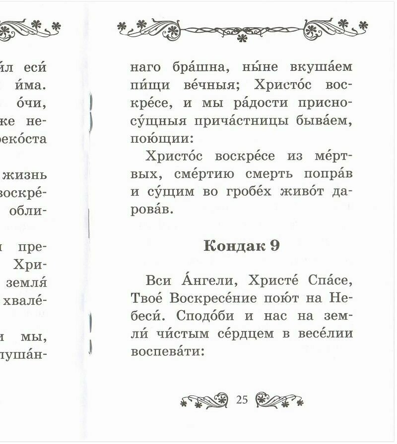 В брошюре представлен текст акафиста Воскресению Христову. Шрифт - русский (гражданский), с ударениями.