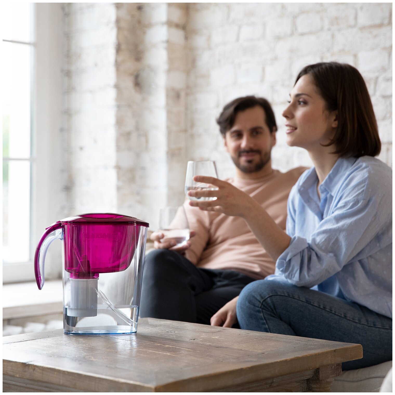 Фильтр-кувшин имеет плоскую форму, благодаря которой может размещаться в дверце холодильника и эргономичную ручку с текстурой, препятствующей соскальзыванию руки. Кувшин изготовлен из высококачественного пластика BASF, допущенного для контакта с питьевой водой. Фильтр-кувшин эффективно очищает воду от активного хлора, органических и хлорорганических соединений, ионов тяжелых металлов и других вредных веществ. Устраняет неприятные привкусы и запахи.