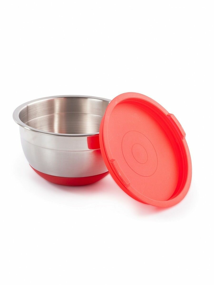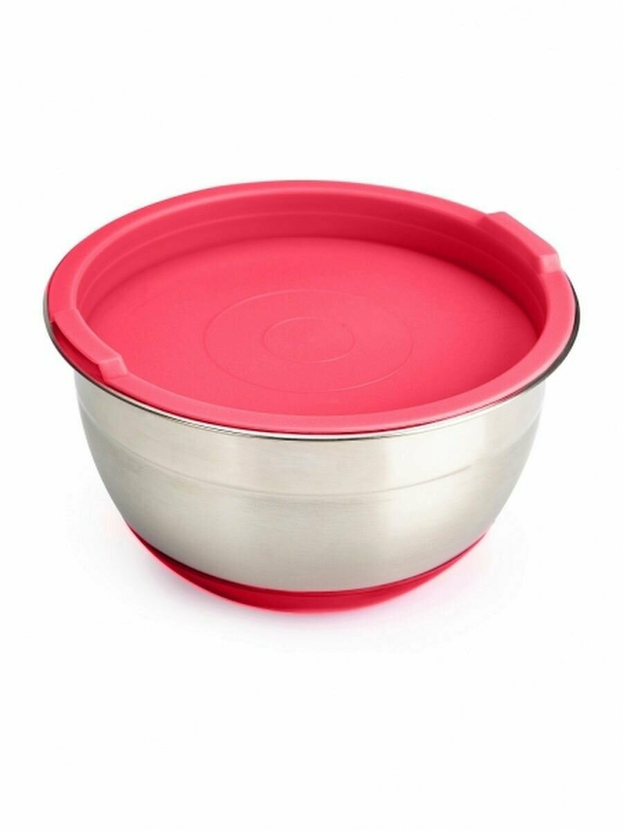 Миска стальная с крышкой MIX - незаменимая вещь для любой хозяйки. Нержавеющая сталь надежна в использовании, за ней просто ухаживать, можно мыть в посудомоечной машине. Силиконовое дно не позволяет миске скользить по поверхности, поэтому она идеально подходит для смешивания продуктов вручную или миксером. В миске можно не только готовить, но и хранить продукты благодаря плотно прилегающей силиконовой крышке. Внимание! Товар представлен в нескольких видах без возможности выбора. Цена указана за 1 шт.