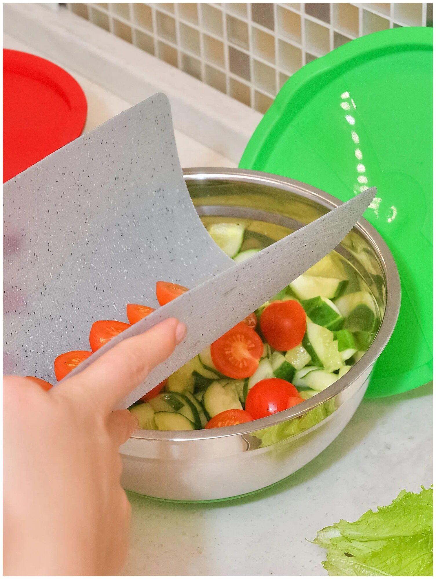 Набор мисок из нержавеющей стали с силиконовым дном. Тарелки универсальные разного объема подойдут для любого случая. В них можно смешивать продукты, хранить вторые блюда, салаты, десерты. Также они подойдут для подачи готовых блюд к столу. Силиконовое дно не позволяет мискам скользить по поверхности, поэтому они идеально подходят для смешивания продуктов вручную или миксером. Миски из нержавеющей стали обладают функцией длительного хранения продуктов благодаря плотно прилегающей силиконовой крышке. В шт посуды входит:Миска стальная с силиконовым дном и крышкой 1.5 л - 1 шт. Миска стальная с силиконовым дном и крышкой 2.4 л - 1 шт. Тарелки стальные с крышкой - незаменимая вещь для любой хозяйки. Полиуретановые крышки покрыты специальным антибактериальным покрытием, поэтому такие тарелки используются в медицине и кухонной промышленности. Миски с крышками не впитывают запахов, устойчивы к истираниям и царапинам.