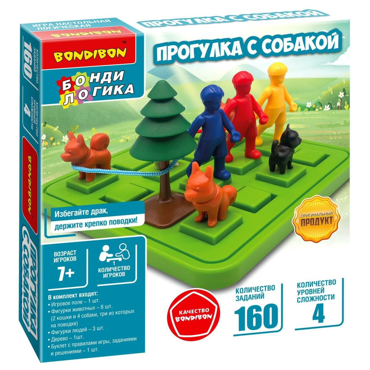 Настольная логическая игра от Bondibon – прекрасный подарок для детей, которые обожают решать интеллектуальные задачки. Замечательная красочная головоломка серии БондиЛогика с забавными фигурками надолго увлечет мальчиков и девочек. Выберите одно из 160 увлекательных заданий. Поместите всех собак на игровое поле в соответствии с указаниями в Вашем задании. Постарайтесь найти верное решение. Помните, собак нельзя размещать рядом друг с другом и кошками, а поводки всегда должны быть прямыми и натянутыми. Постепенно переходите на более сложные уровни. Оригинальная игра от Бондибон способствует развитию зрительно-моторной координации движений, познавательных способностей, концентрации внимания, логического мышления и эмоционального интеллекта. В набор входят: игровое поле, 6 фигурок животных (2 кошки, собака без поводка, 3 собаки на поводке), 3 фигурки людей, дерево, буклет с правилами игры, заданиями и решениями. 4 уровня сложности Возраст 7+ Количество игроков 1