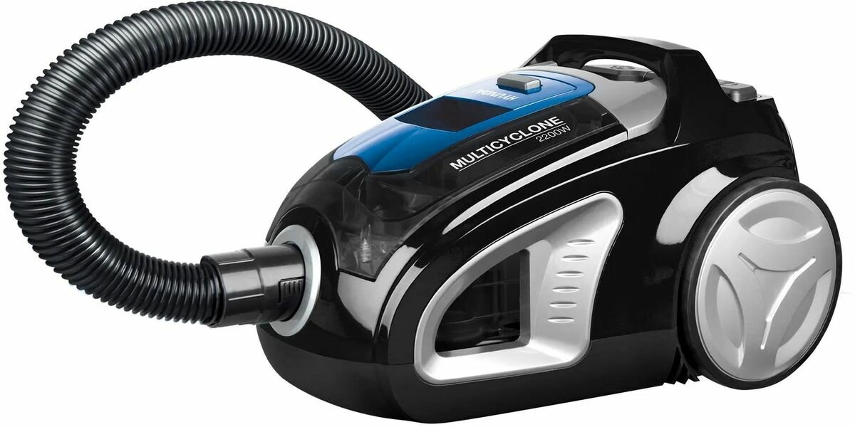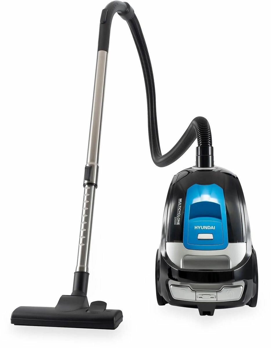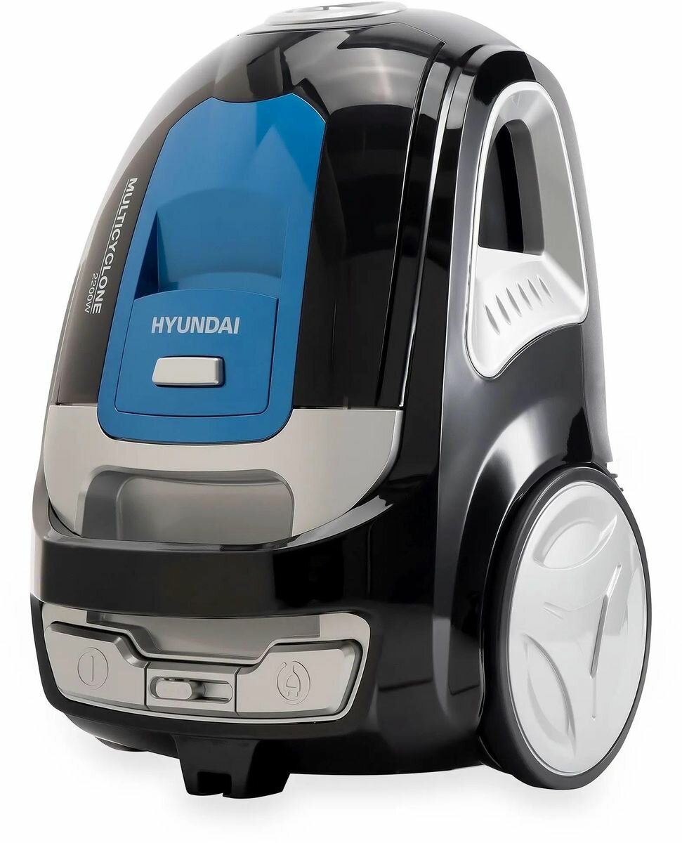 Пылесос Hyundai HYV-C2530 черный/синий, мощность 2200Вт, уборка: сухая, объем пылесборника 3.5л, мощность всасывания 400Вт, регулировка мощности на корпусе, длина шнура 5м