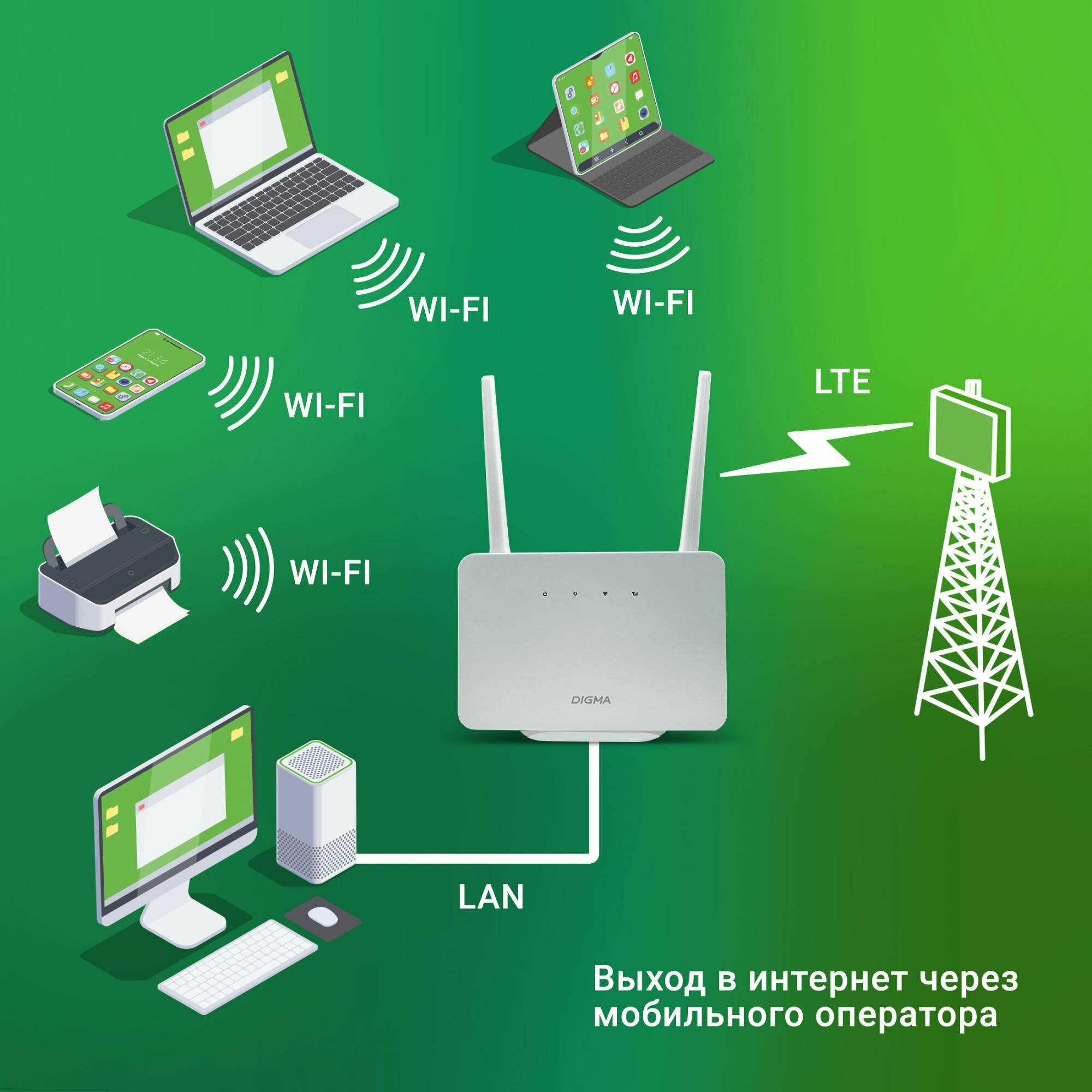 | Дополнительная информация | Интернет-центр Digma Home (D4GHMAWH) — это удобное устройство для подключения домашних устройств к сети Интернет через встроенный LTE модем., , К маршрутизатору подключается до 32 устройств. Это значит, что Интернет работает на множестве устройств одновременно без ухудшения качества соединения. Благодаря наличию LAN-порта, Digma Home создает локальную проводную сеть, к которой подключаются дополнительные устройства. Однодиапозонный модуль Wi-Fi позволит создать беспроводную сеть для удобного подключения устройств., , У Digma Home компактные размеры и встроенные антенны, что делает устройство безопасным и удобным для установки в желаемой локации дома или офиса. Также легко переносить устройство с собой, если необходим доступ к Интернету в разных местах., , Для начала работы установите SIM-карту. Простой интерфейс управления помогает легко настроить и контролировать работу устройства., , Наслаждайтесь быстрым и стабильным соединением в любой точке дома с интернет-центром Digma Home! |