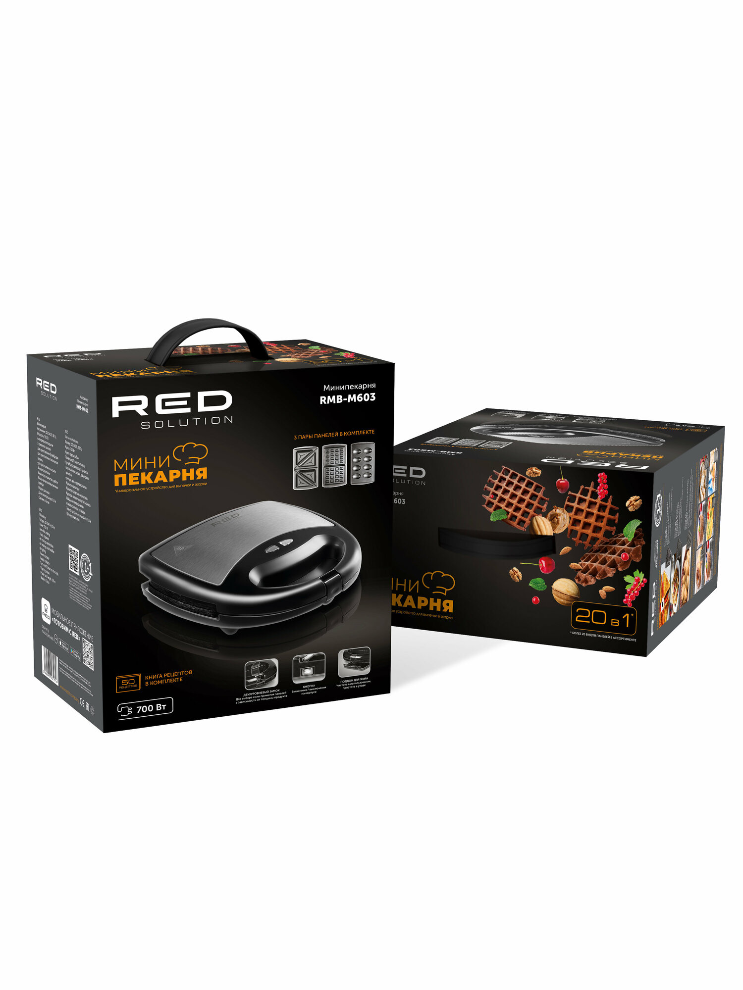 Мультипекарь Red Solution RMB-M603 черный/серебристый, мощность 700Вт, формы для готовки: пластины для венских вафель, сэндвичей, пончиков