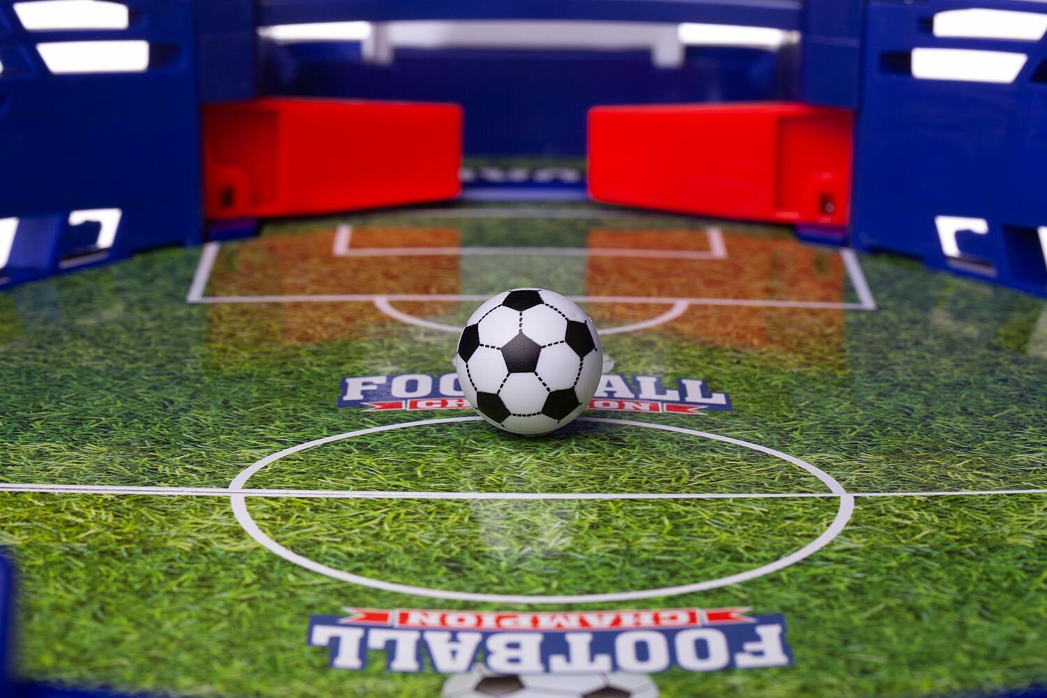 Настольный футбол от бренда Junfa - это спортивное развлечение для всей семьи, увлекательная настольная игра для будущих футболистов и их друзей. Ярко оформленное игрового поля, стилизованное под стадион, сразу привлекает к себе внимание. Зоны ворот прикрыты специальными барьерами, которые открываются при помощи боковых джойстиков. Управляйте барьерами для отражения ударов противника, стараясь ответным ударом забросить мяч в его ворота. Побеждает тот, кто забьет больше голов. Счет игры будет удобно вести на специальном табло, размещенном по центру на бортике. Ввести мяч в игру поможет специальное устройство на противоположной стороне. Игра способствует развитию скорости реакции и внимания, устраивайте соревнования с вашими друзьями, проводите время в веселой обстановке, получайте удовольствие. И возможно игра может стать первым шагом в решении ребенка заниматься футболом.