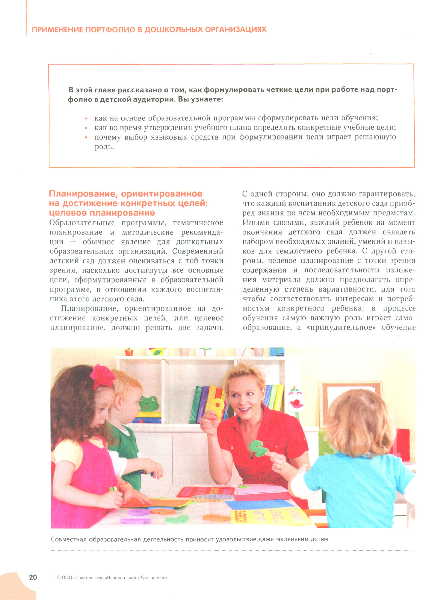 В этом руководстве педагог найдет актуальную информацию о том, как правильно документировать этапы развития ребенка, специально разработанные материалы для быстрого копирования в портфолио, а также идеи по оформлению и наполнению портфолио, заполненные примеры страниц из оригинальных портфолио, полезные советы и отзывы коллег. А многочисленные цветные фотографии из жизни дошкольников покажут, что работать с портфолио реально и увлекательно!