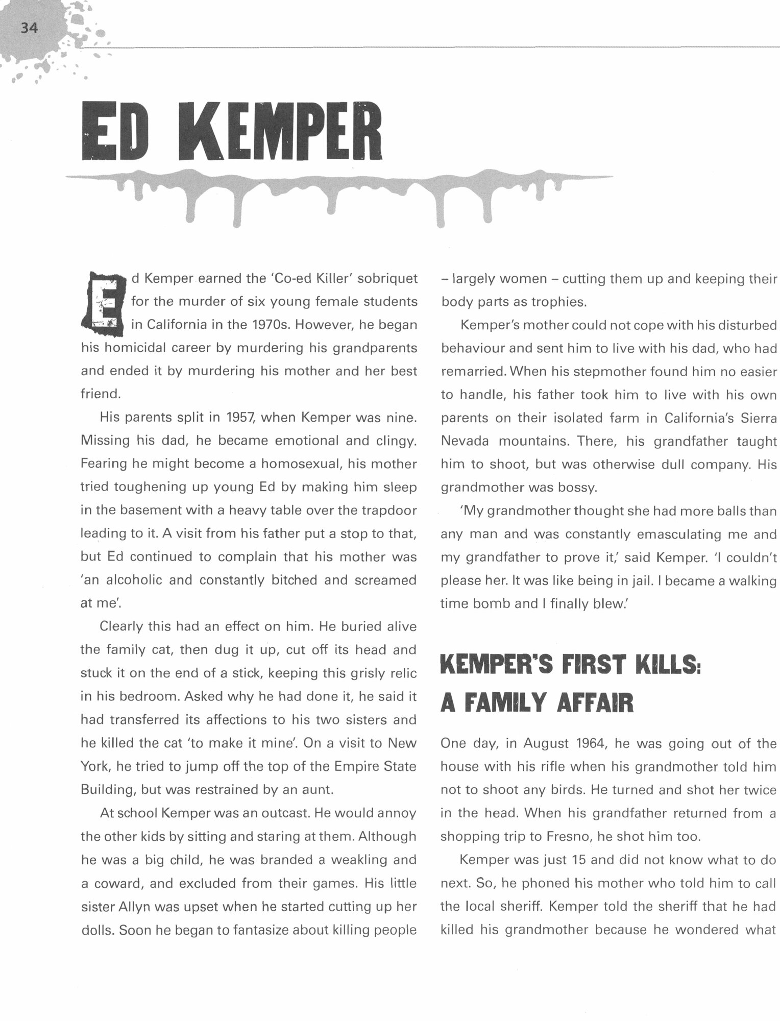 • Ed Kemper, who dismembered the bodies of his victims once he had finished with them;