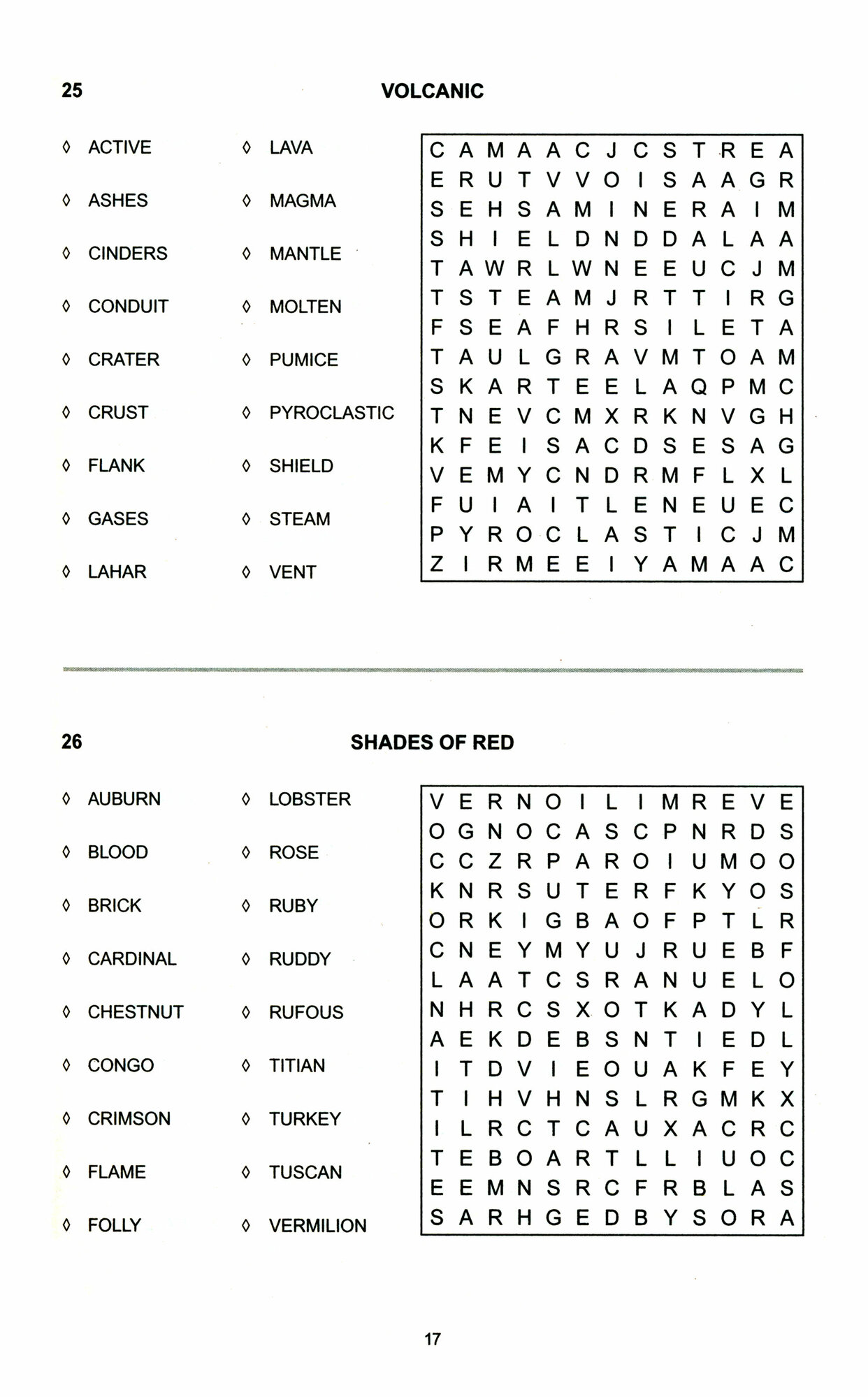 • Exercise your brain: Give your mind a great workout as you look for the hidden words, which may run forward or backward, up or down, or even diagonally.