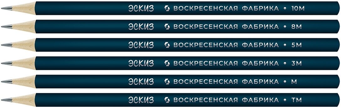 Набор графитных карандашей заточенные ТМ "ВКФ" "Эскиз", с градацией твердости ТМ, М, 3М, 5М, 8М, 10М.