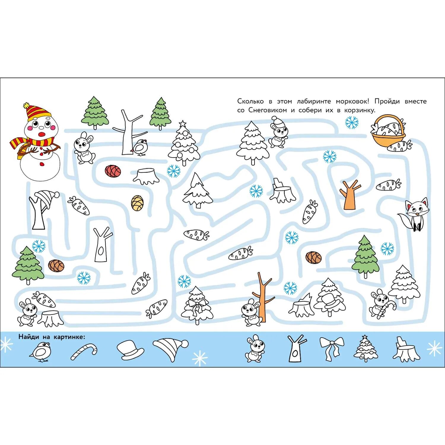 На страницах этой книжки вас ждёт встреча со Снеговиком и его друзьями. Перед праздником он потерял свой нос-морковку. Помоги ему отыскать морковки на каждой странице. А ещё мы предлагаем вам вместе с главным героем выполнить разные задания: найдите отличия между картинками, пройдите лабиринты, отыщите неточности. Внизу каждой страницы на голубой полосе загаданы предметы. Найдите их на большой картинке. Ну и, конечно, не забудьте раскрасить всех наших замечательных персонажей!